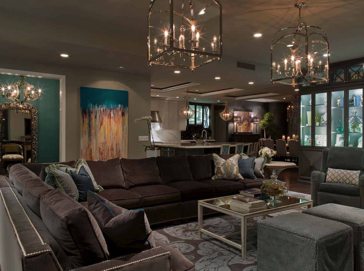 Люстры в гостиной совмещенной с кухней