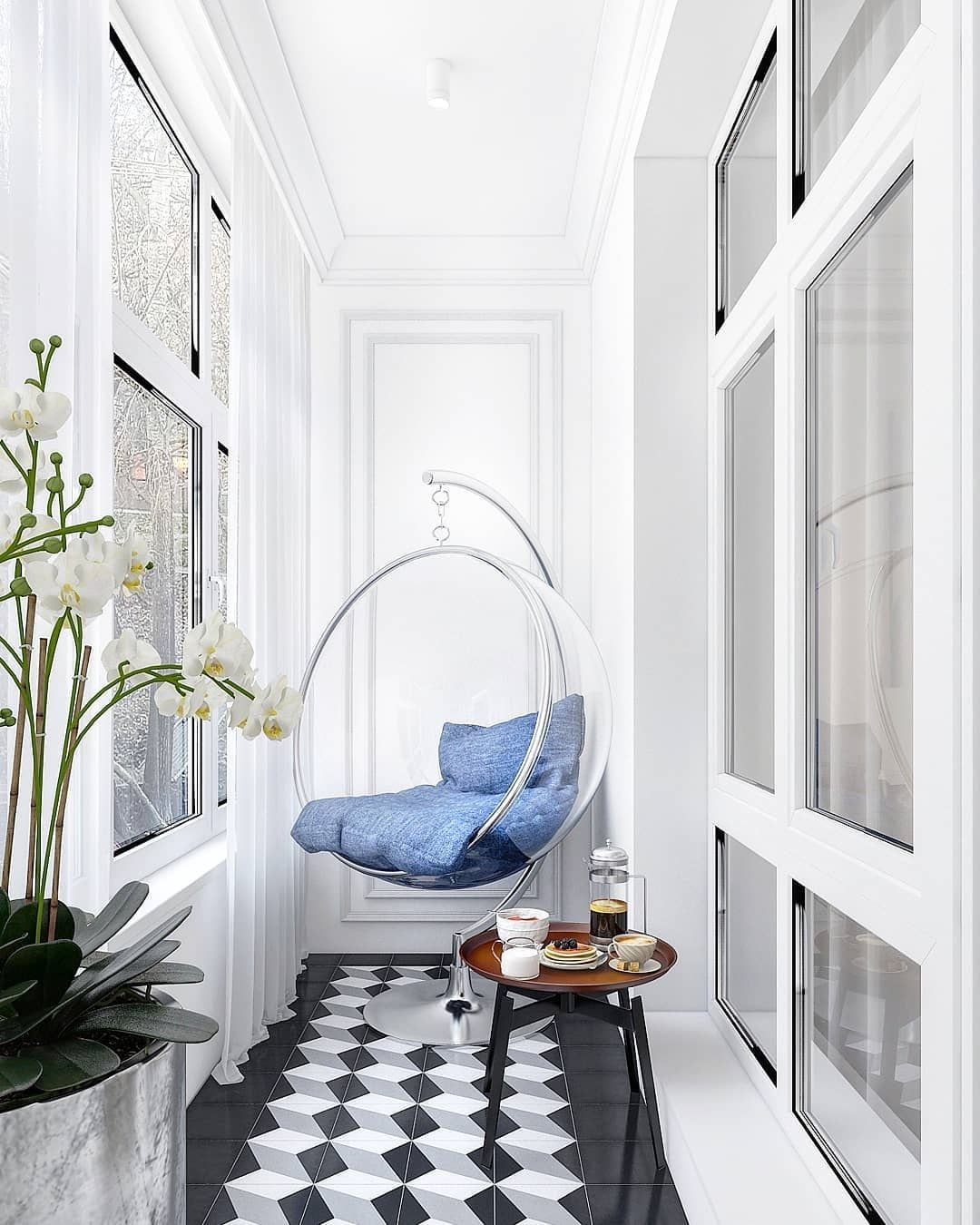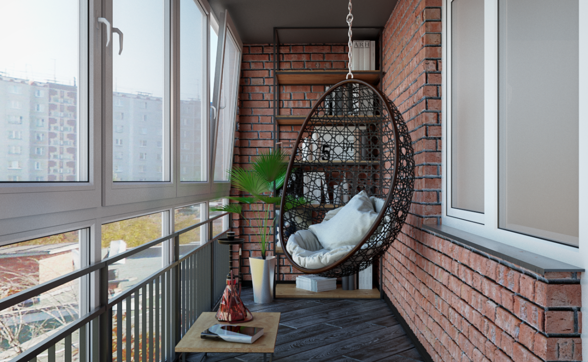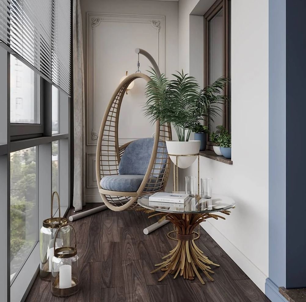 Подвесное кресло на балконе