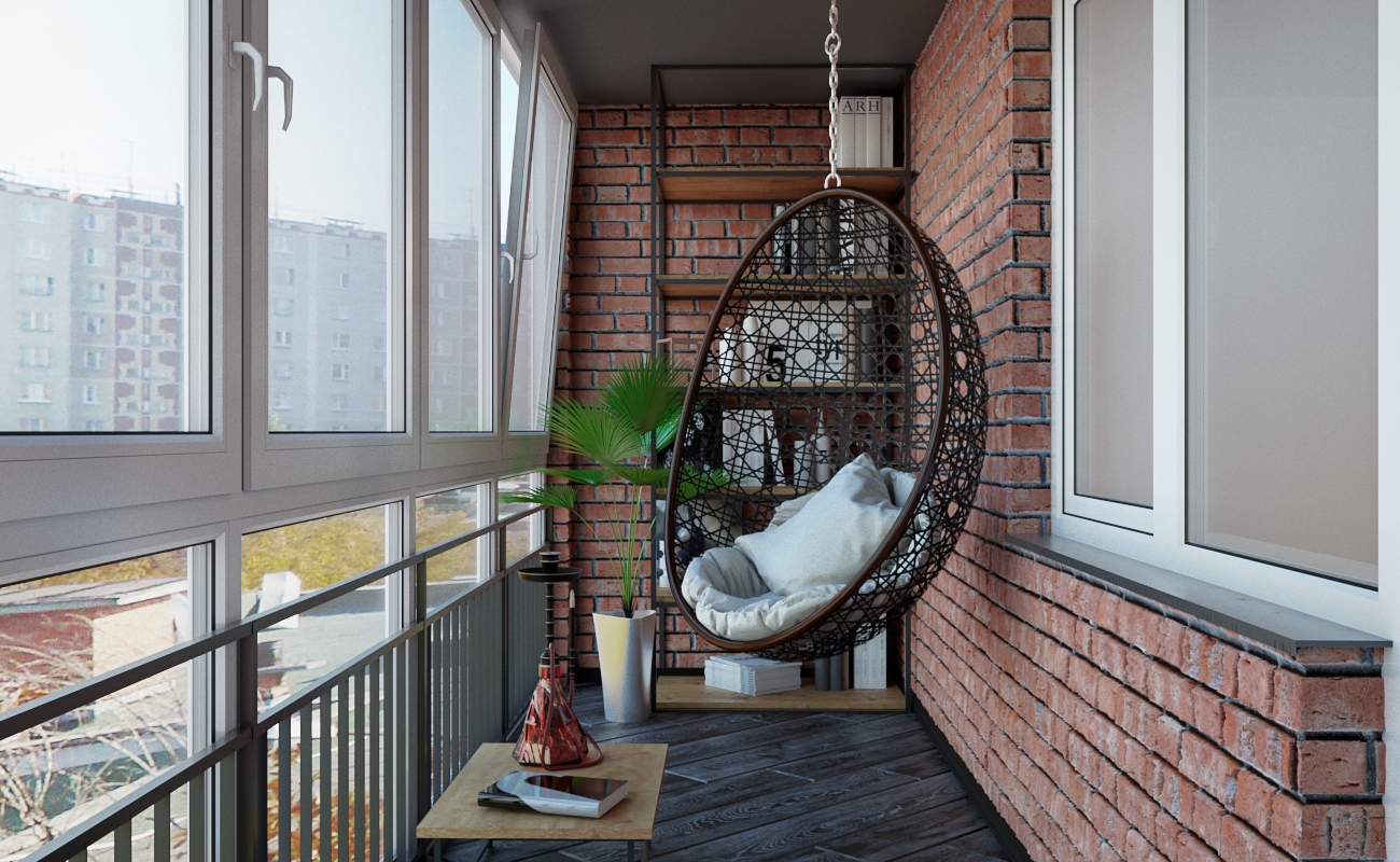 Балкон в стиле лофт красный кирпич