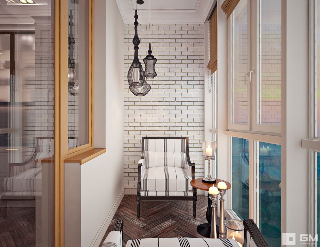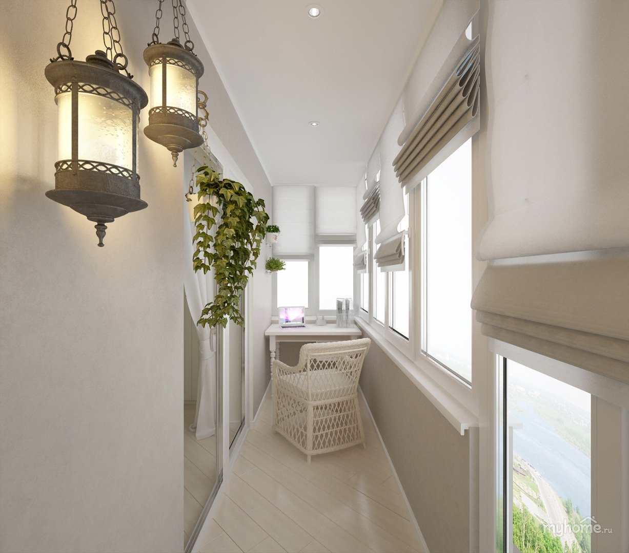 Интерьер балкона с панорамным остеклением