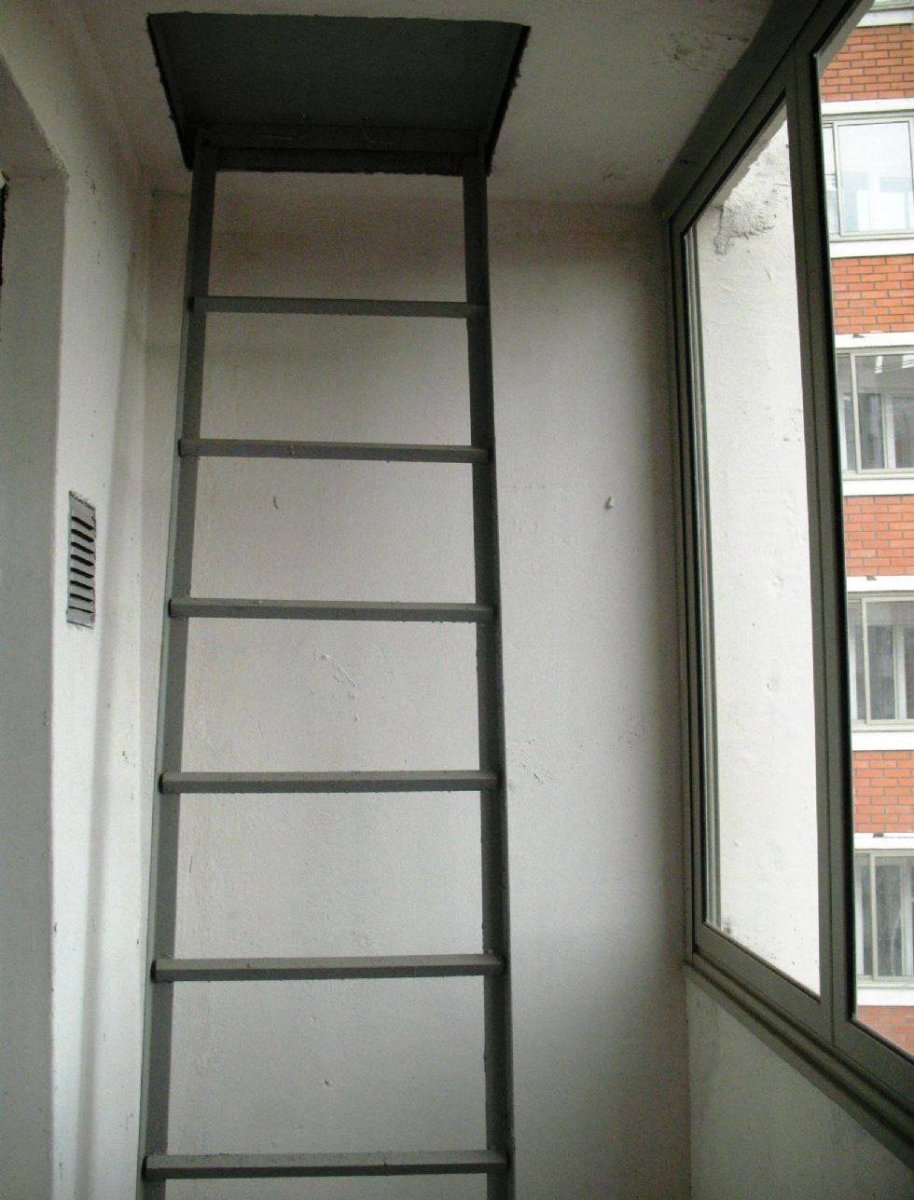 Балкон с пожарной лестницей и люком