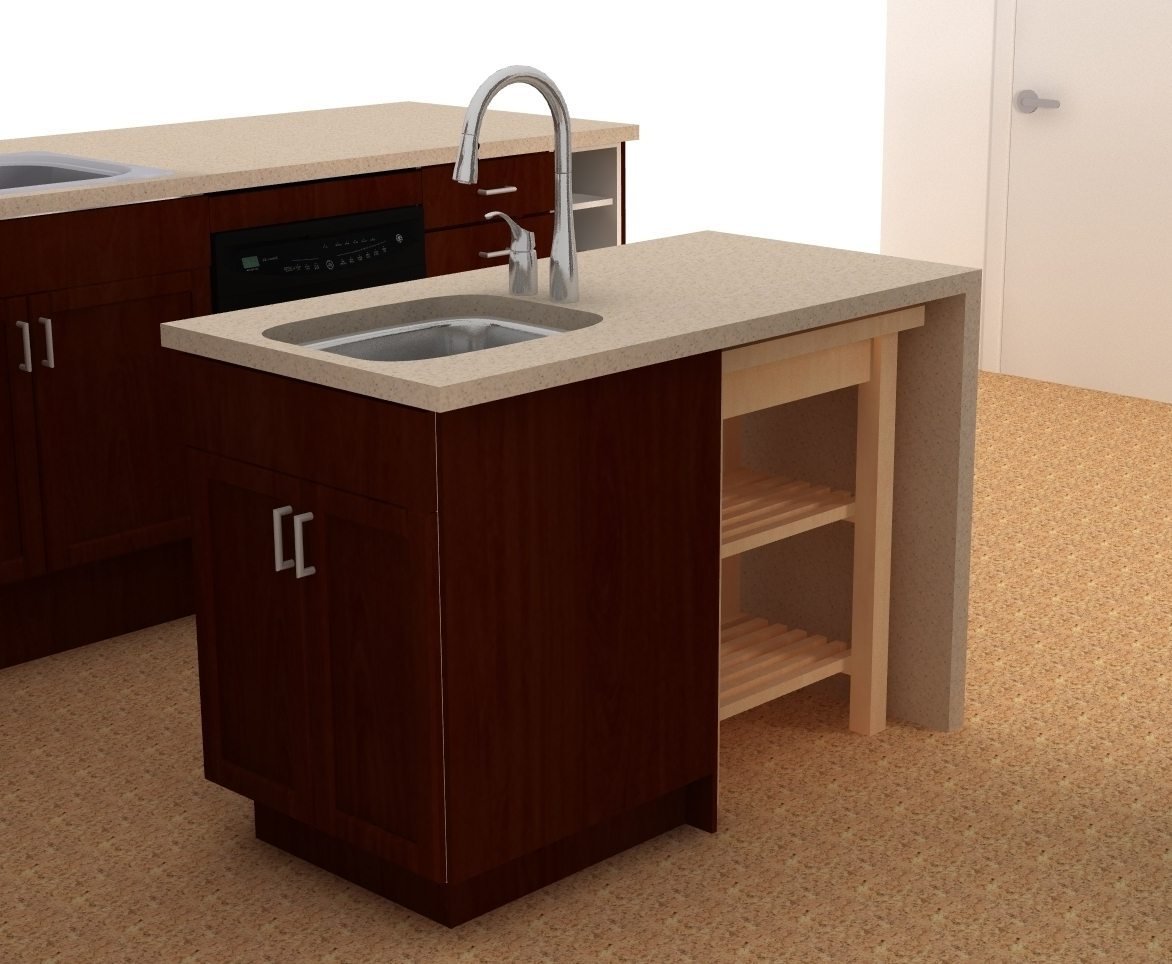 Организация пространства под угловой мойкой на кухне