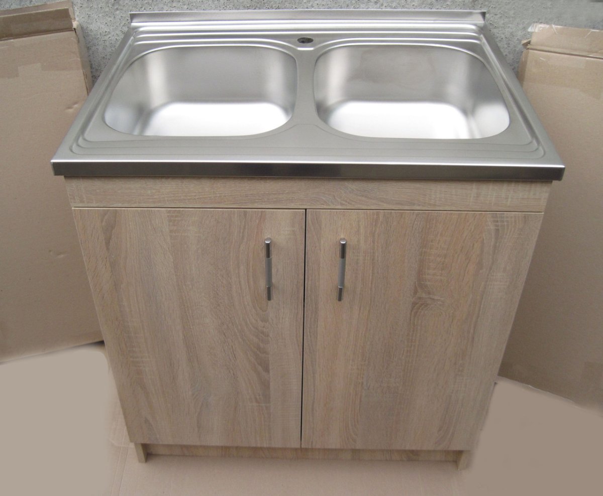 Кухонная мойка с тумбой 80 х 60 см сонома двойная Люкс