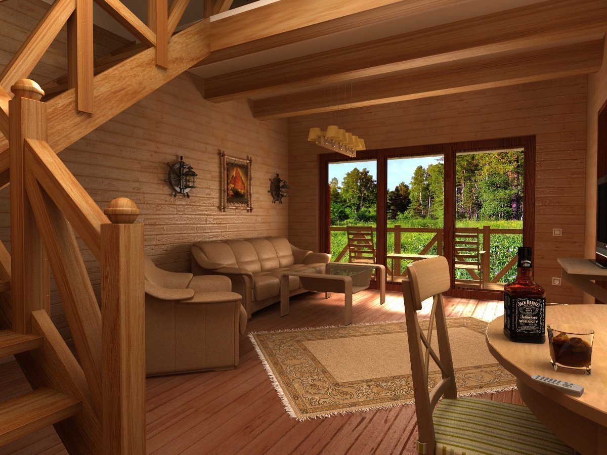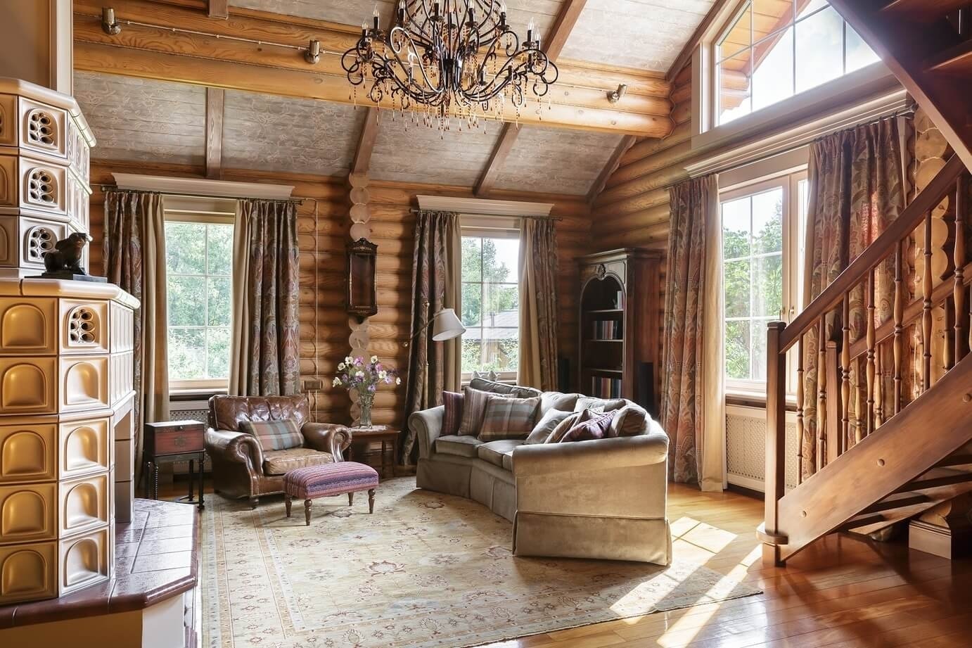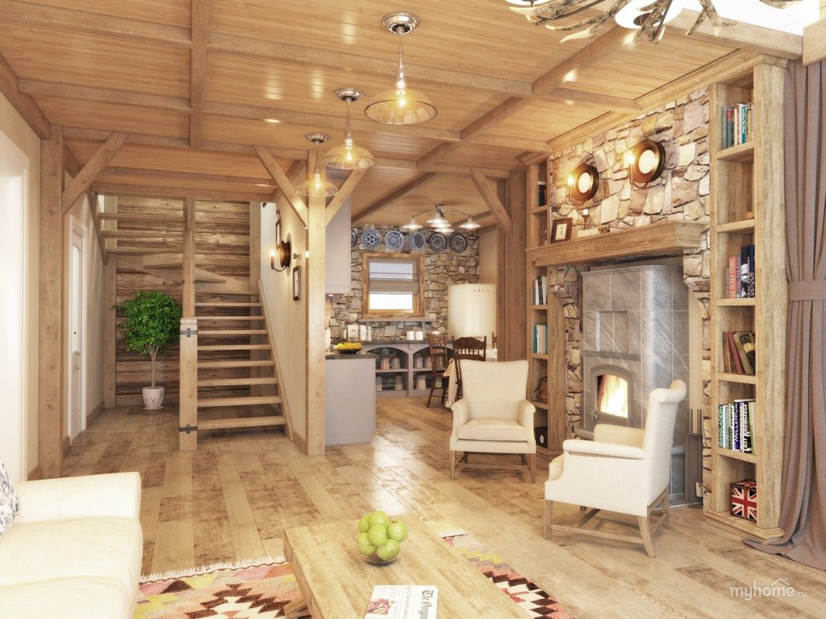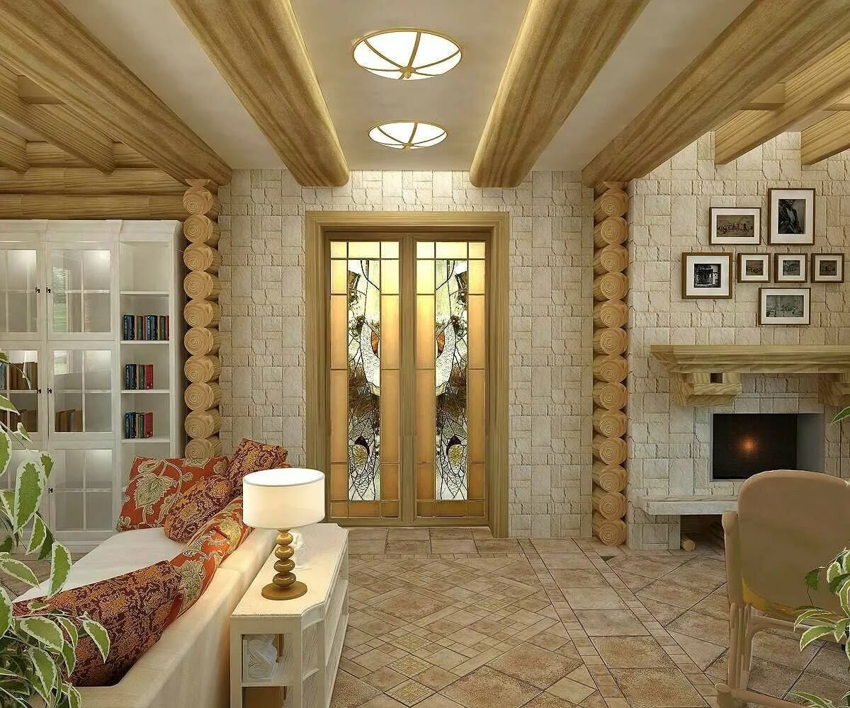 Интерьер дом из оцилиндрованного бревна внутри дома