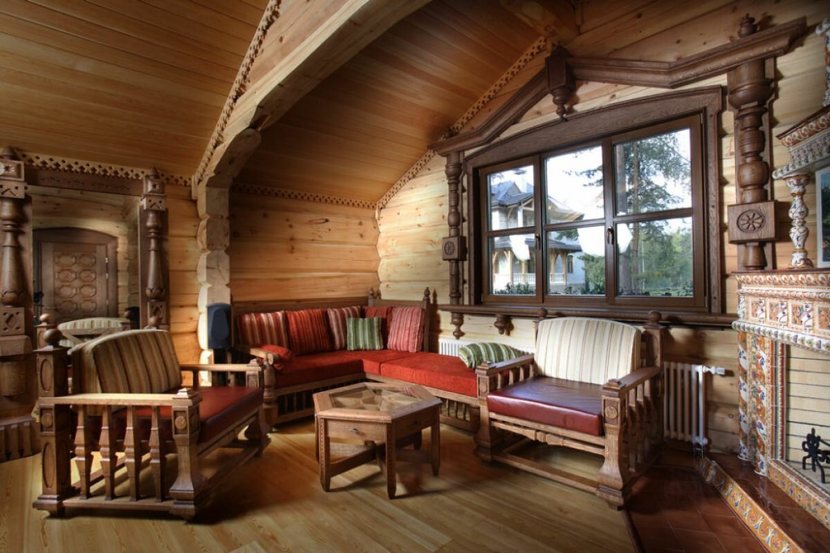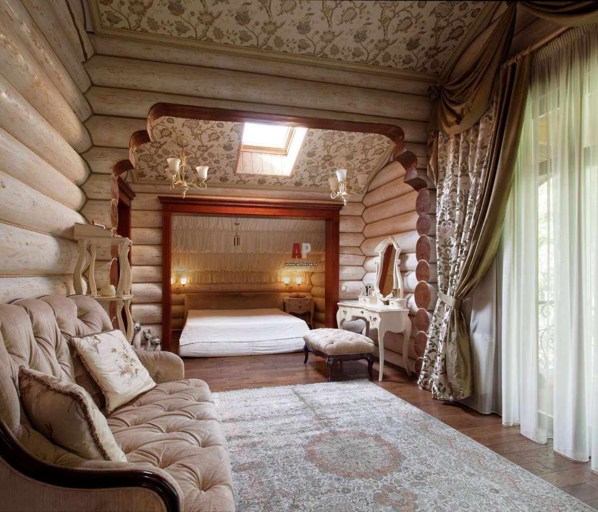 Интерьер в стиле русская усадьба в бревенчатом доме