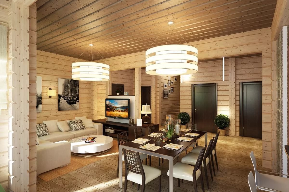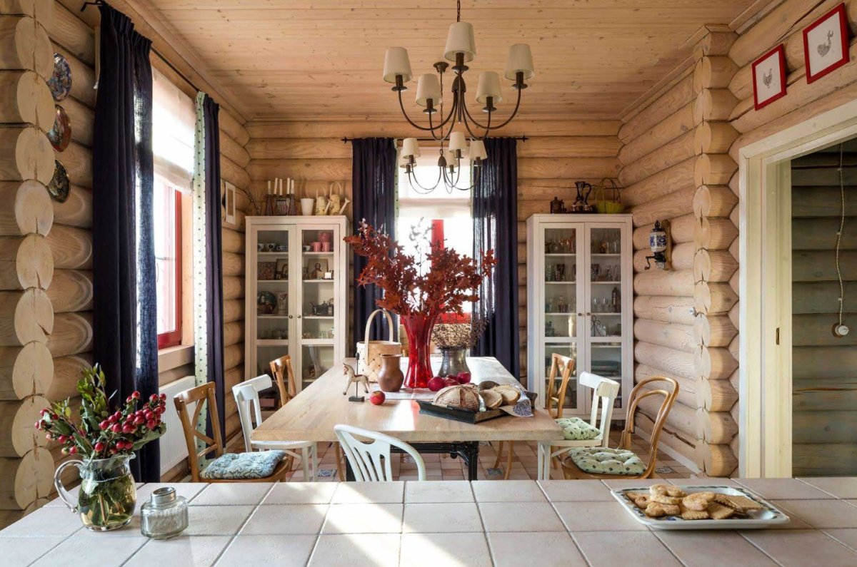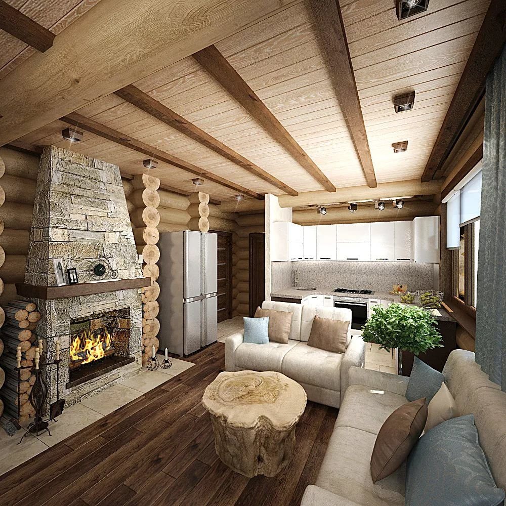 Дом из оцилиндрованного бревна интерьер кухня гостиная