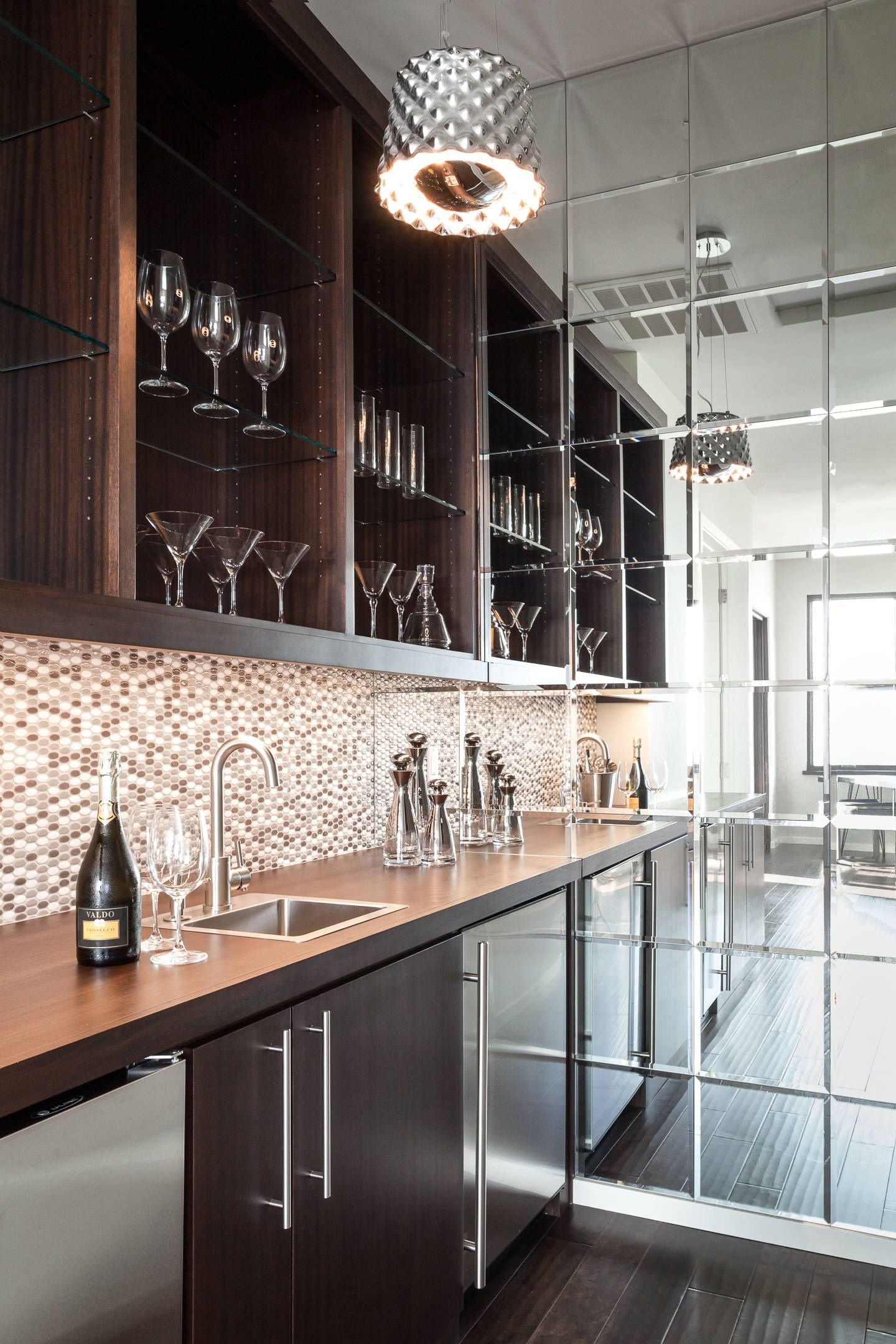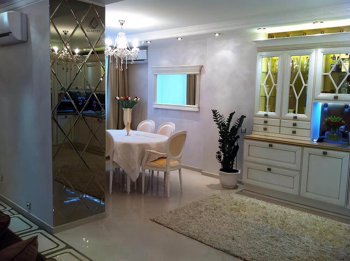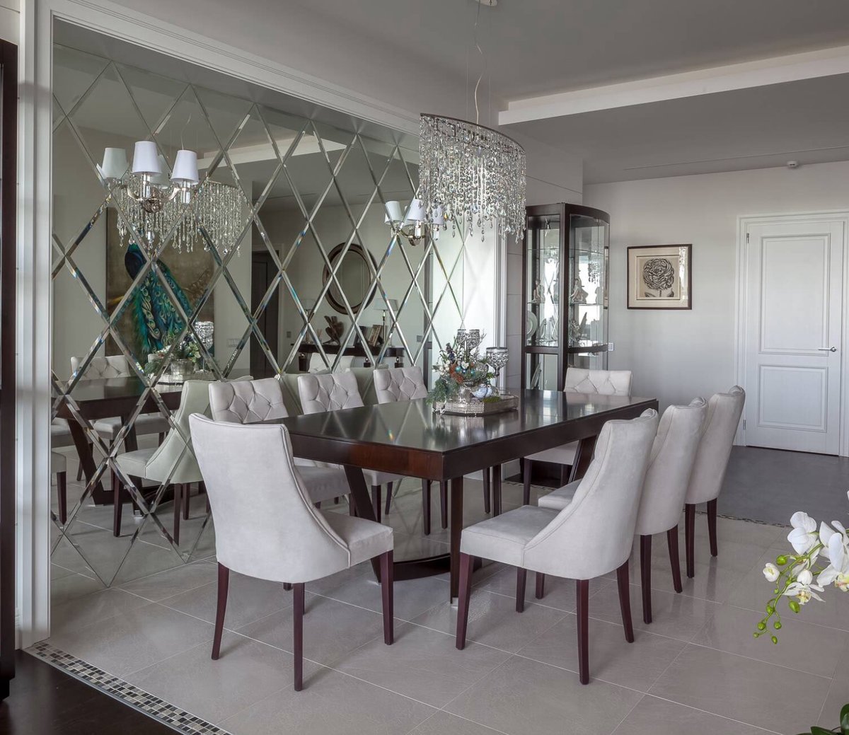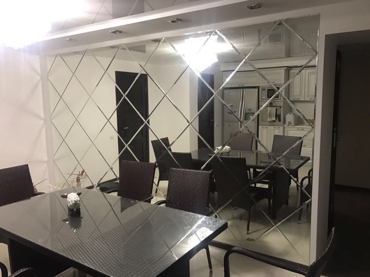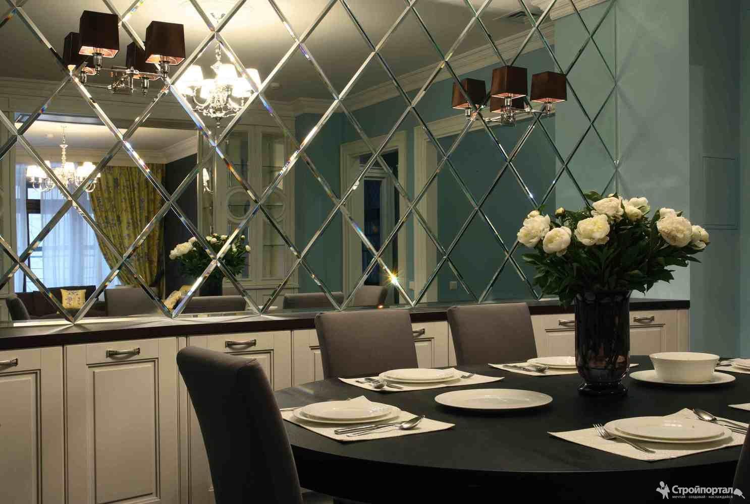 Зеркальная плитка в обеденной зоне