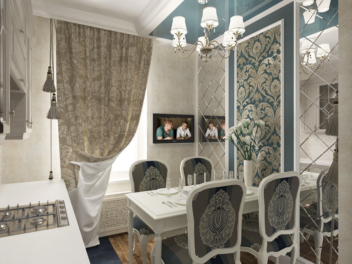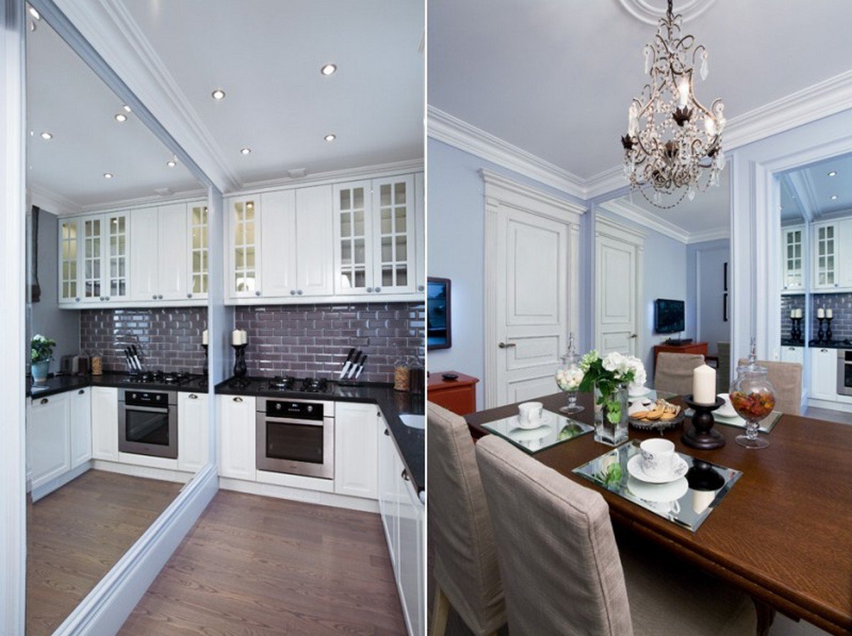 Зеркала в интерьере маленькой кухни