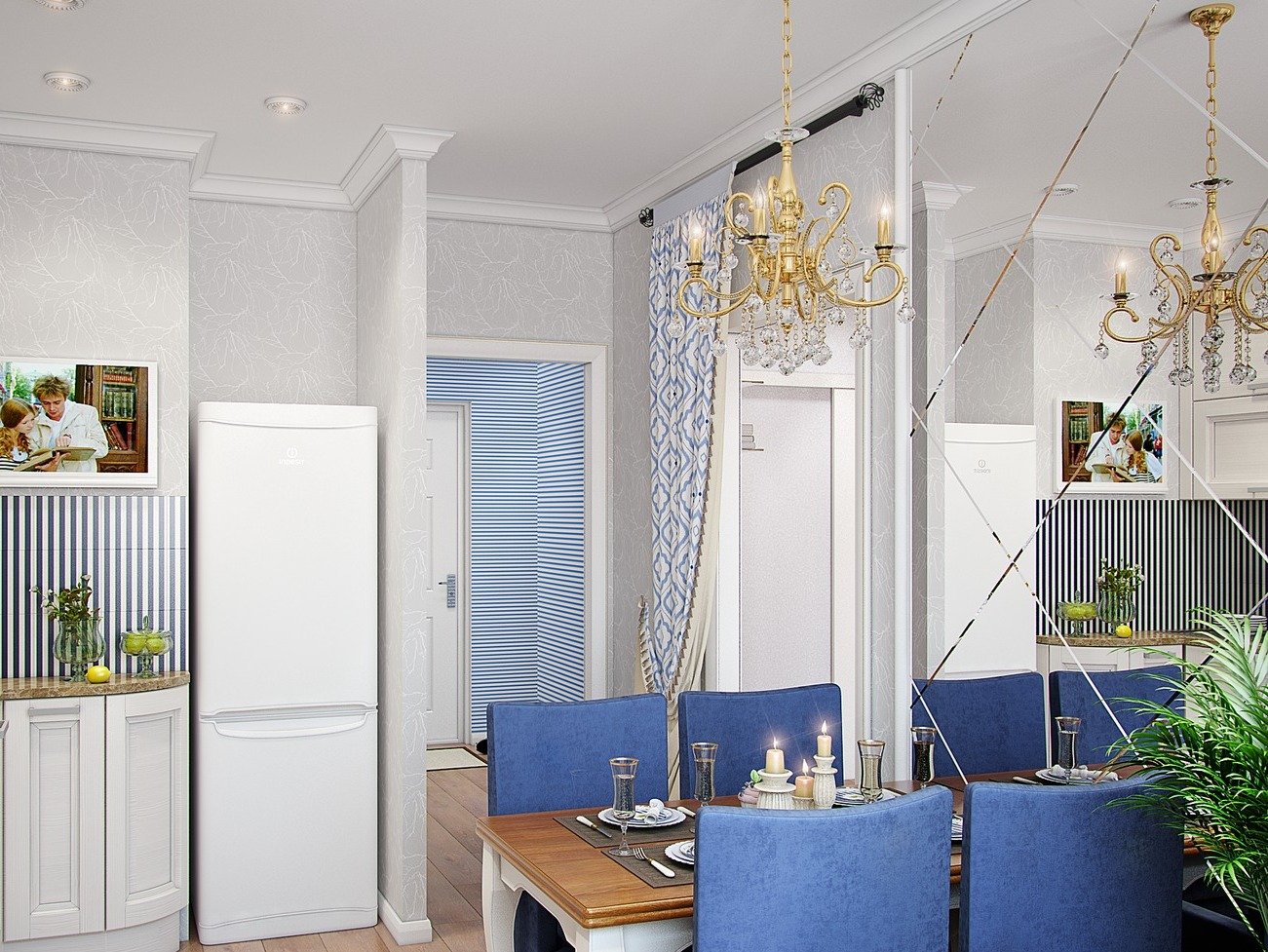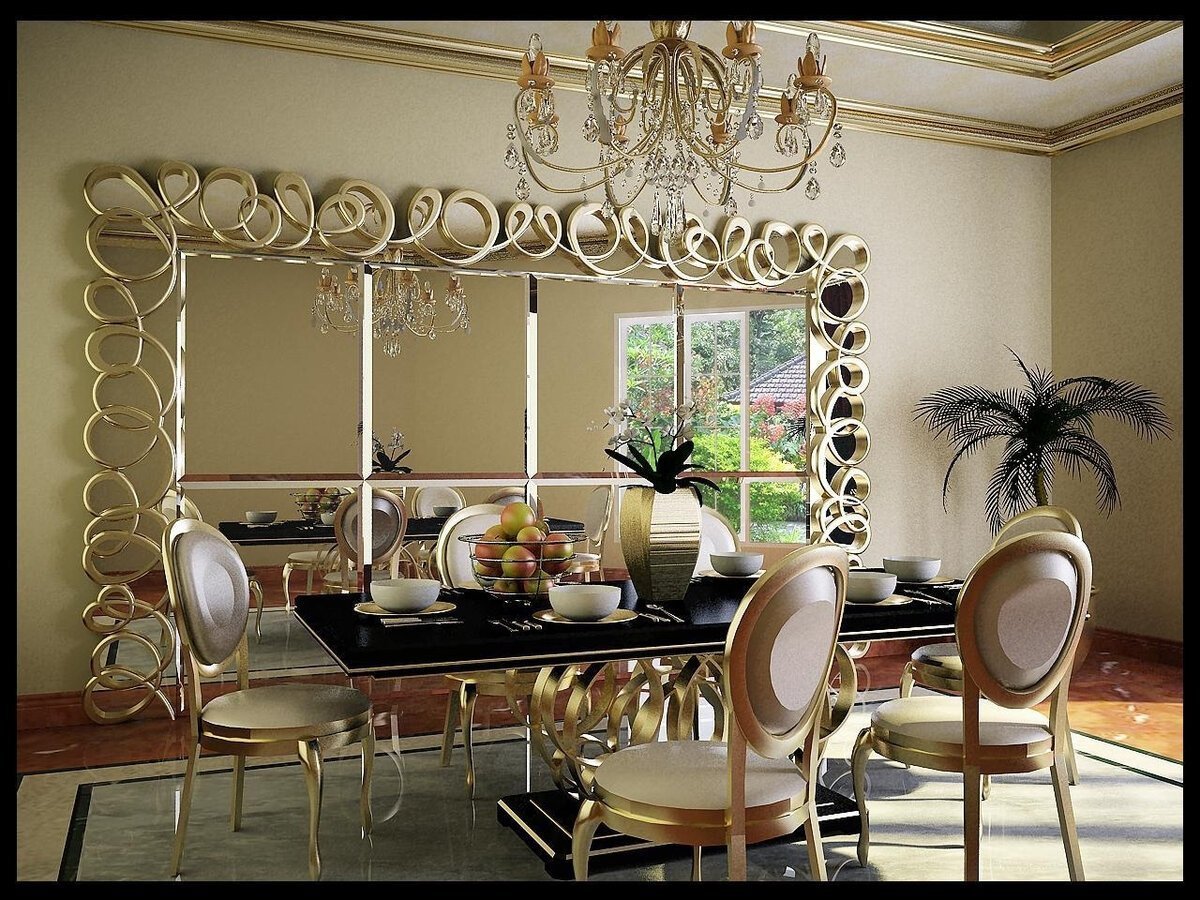 Зеркало в интерьере столовой
