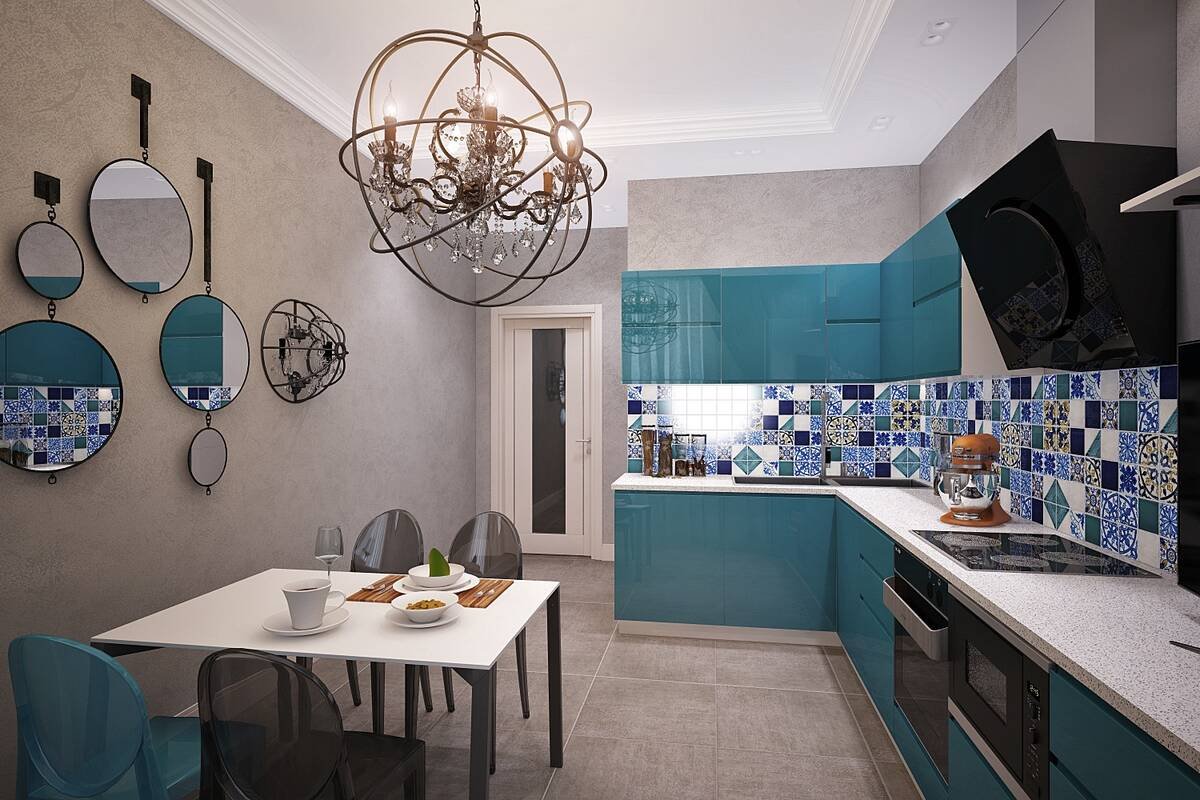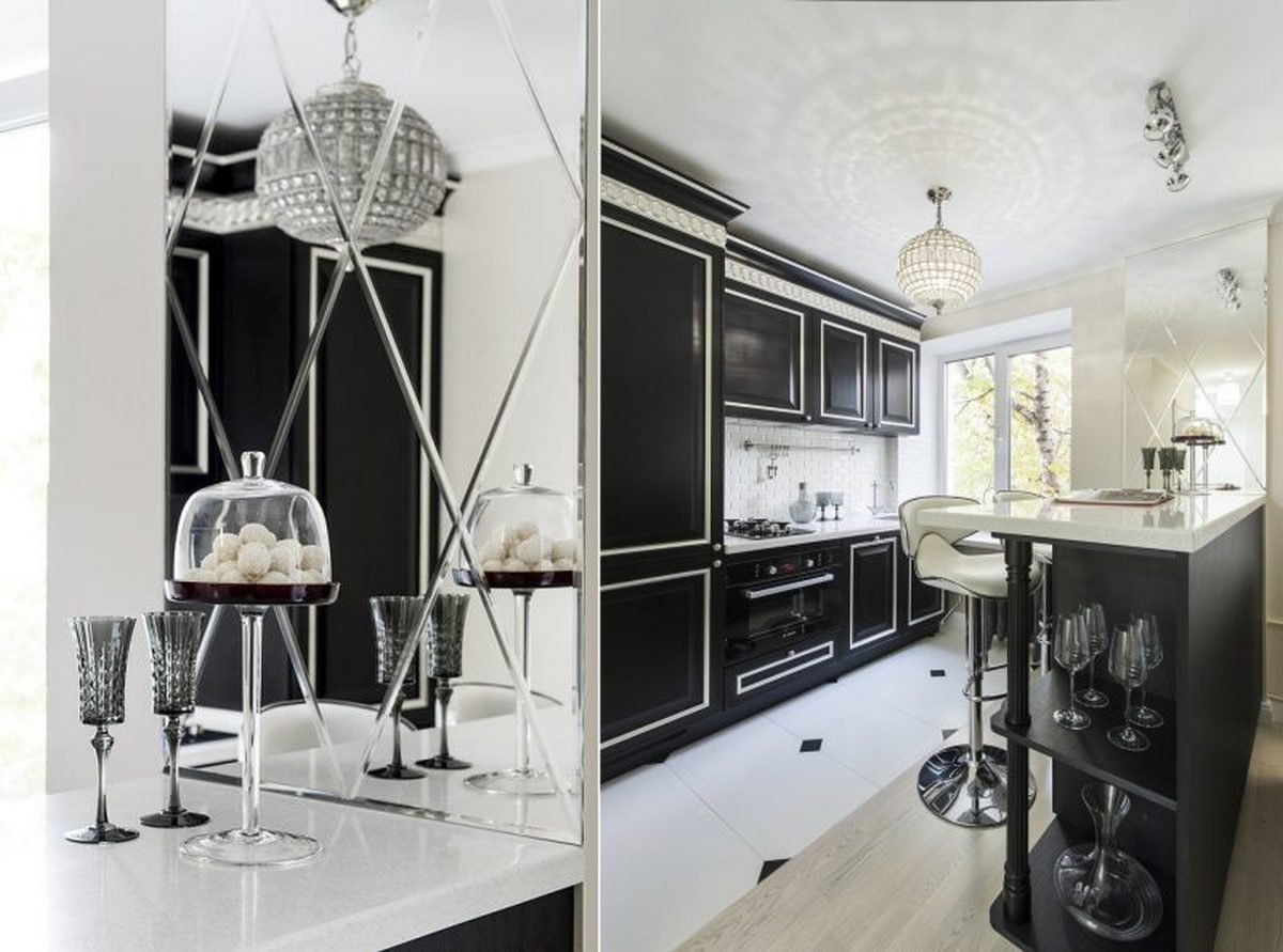 Зеркальная плитка в интерьере кухни