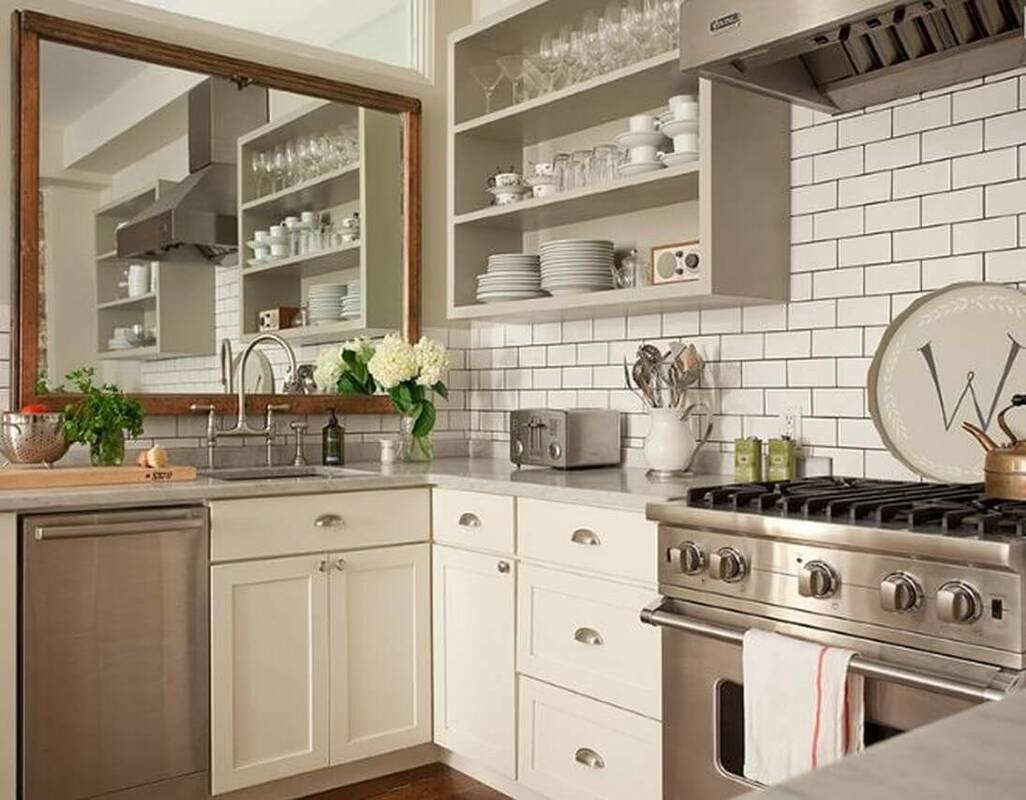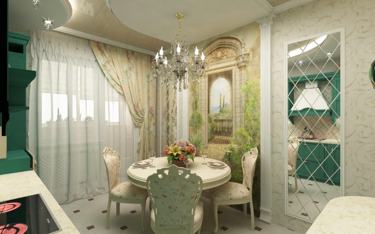 Зеркало на кухне в интерьере