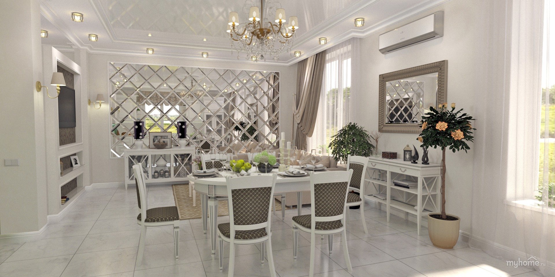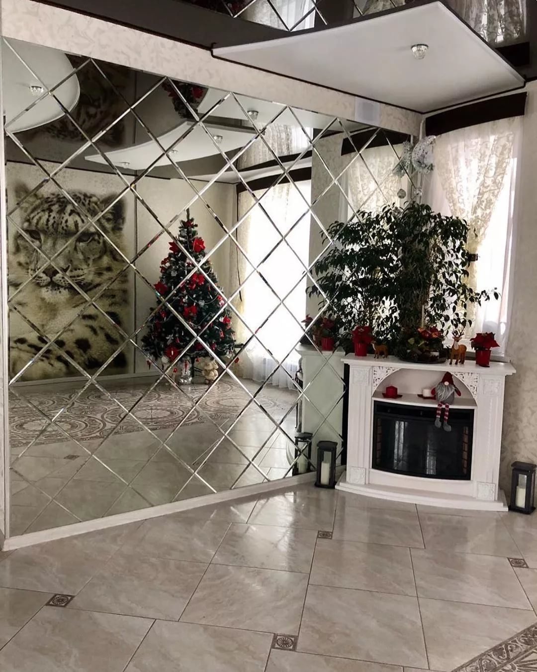Зеркальная плитка в интерьере гостиной