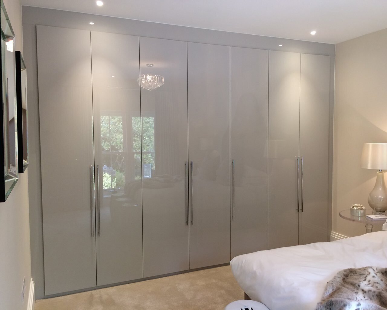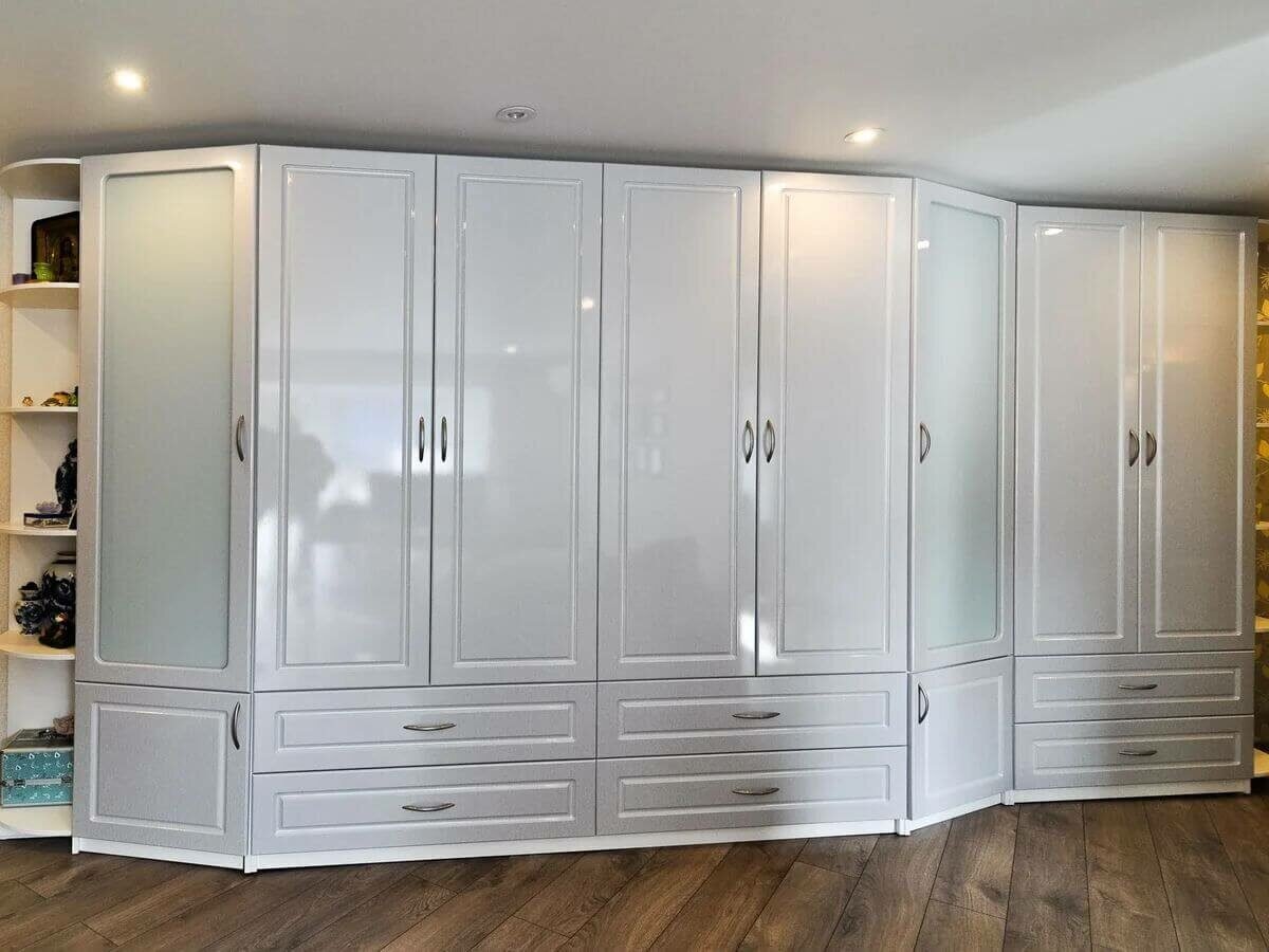 Глянцевый шкаф в спальню до потолка