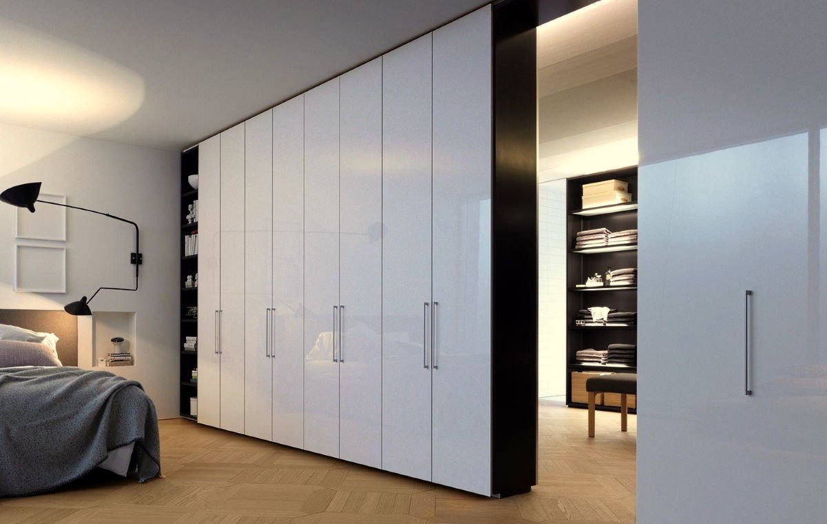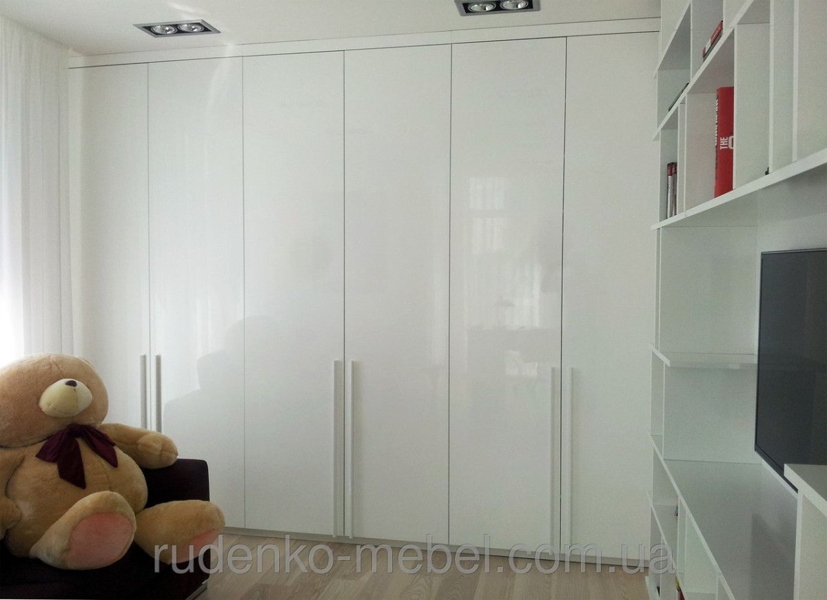 Встроенный распашной глянцевый белый шкаф