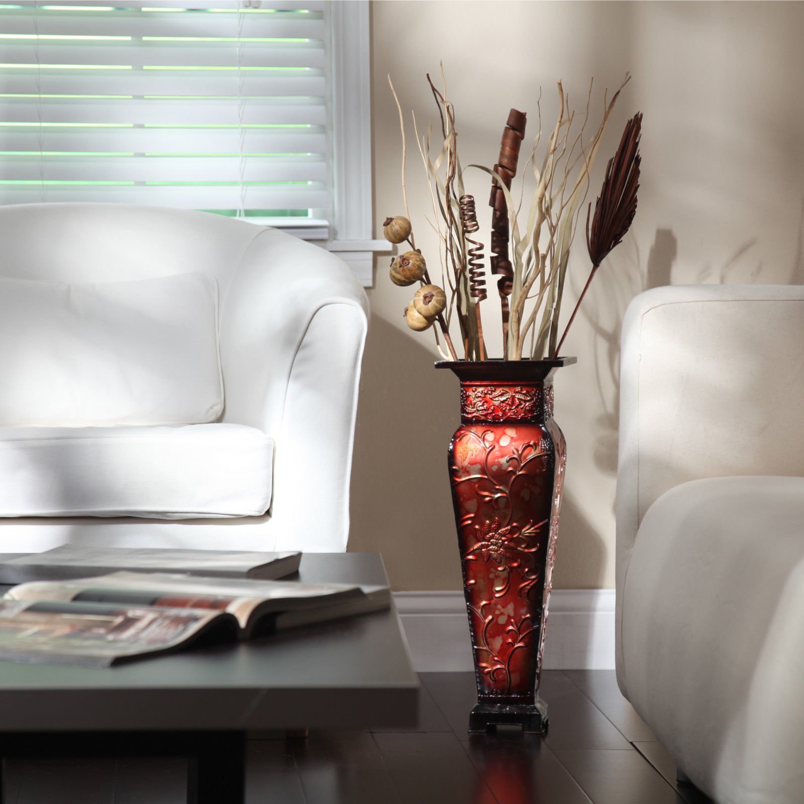 Напольная ваза в интерьере гостиной