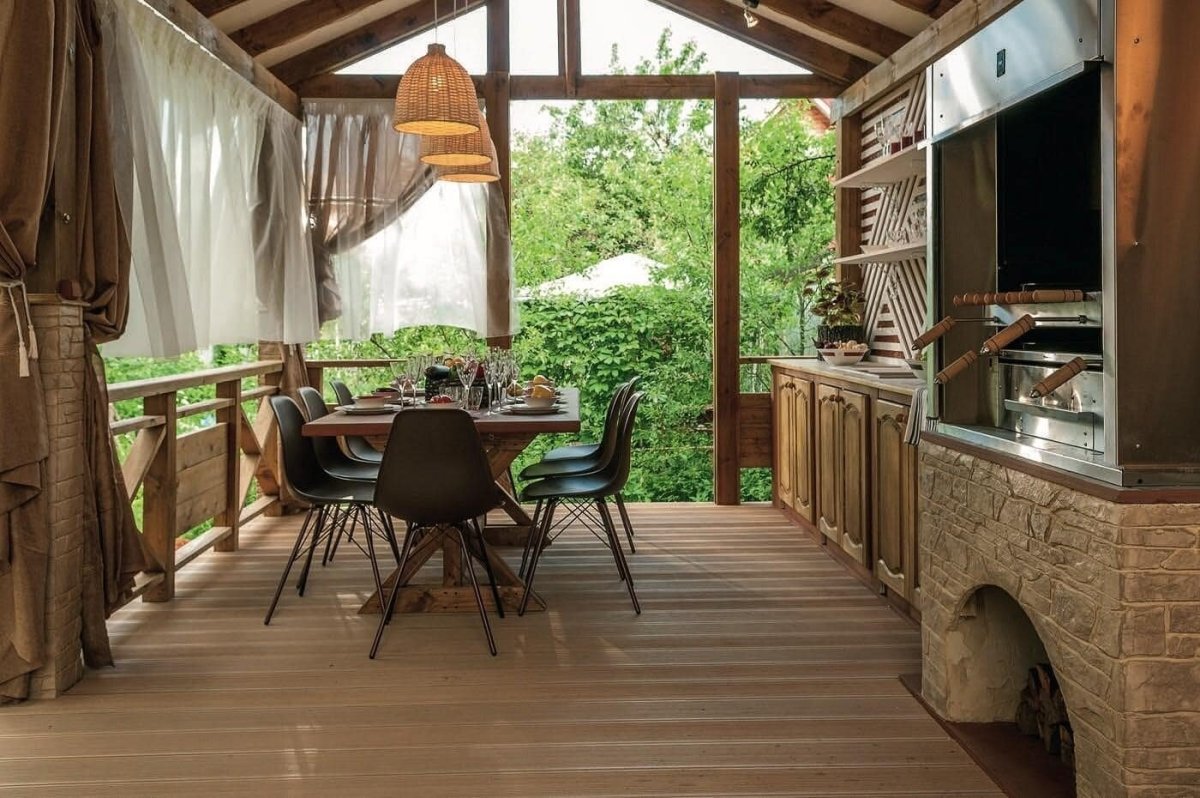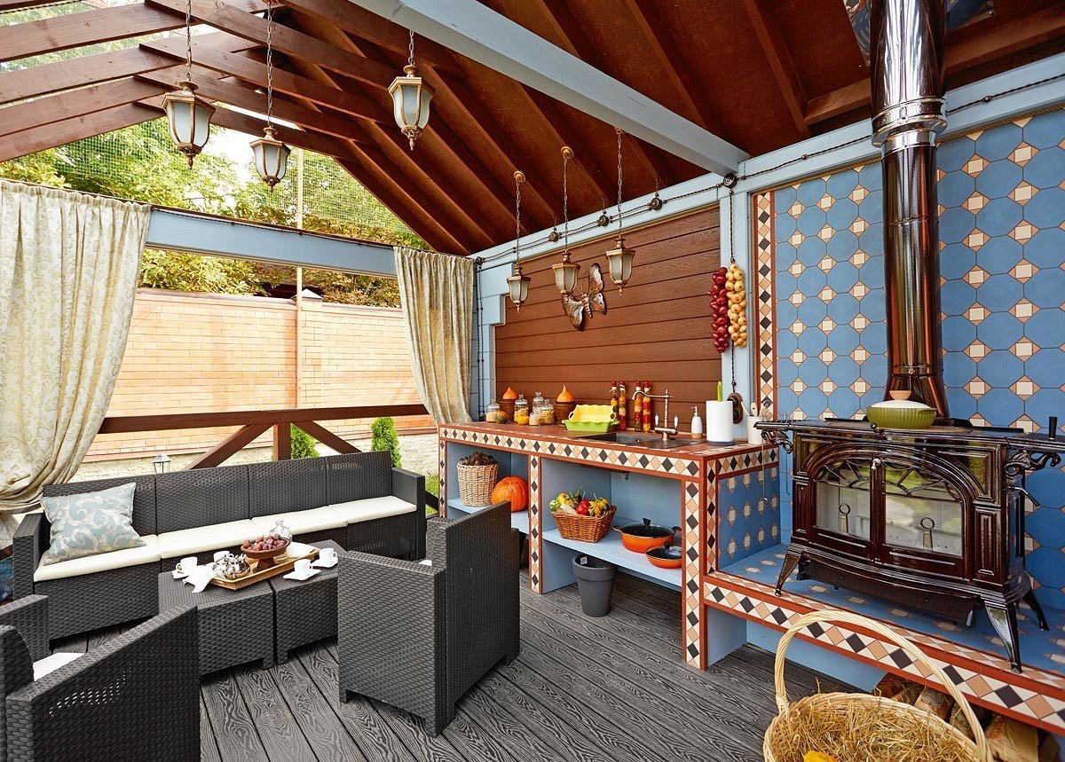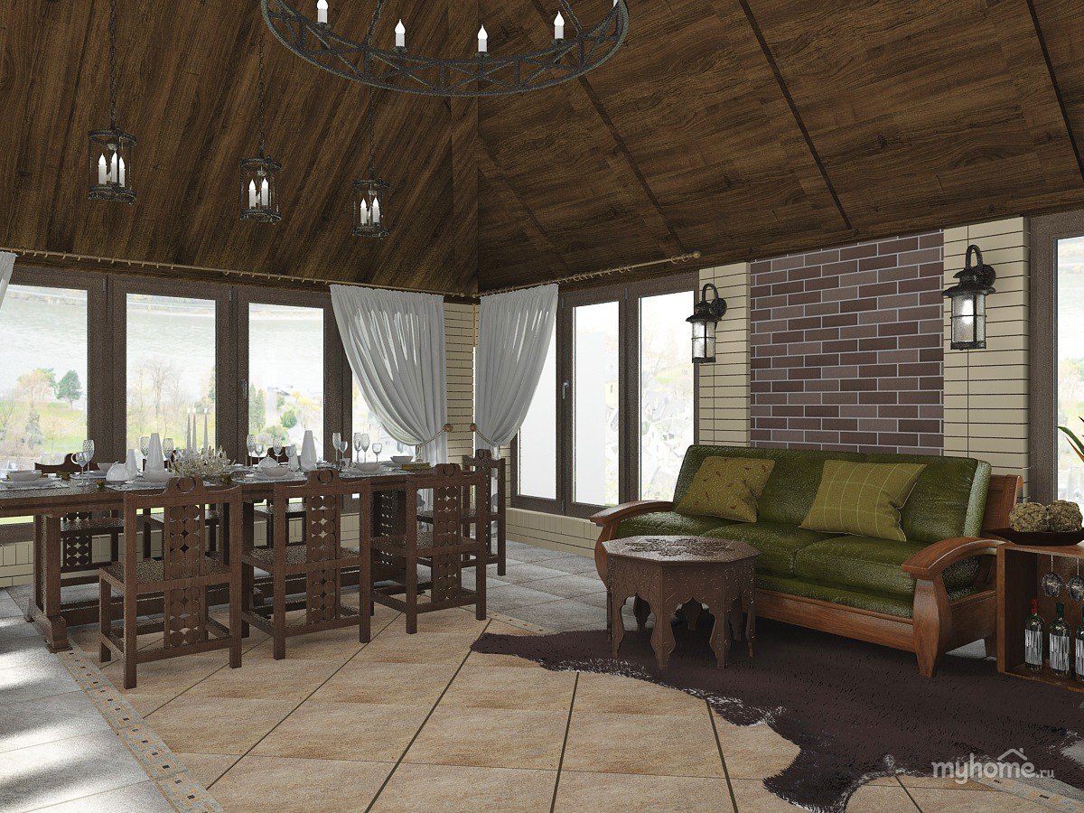 Интерьер беседки 4х4 в среднеазиатском стиле