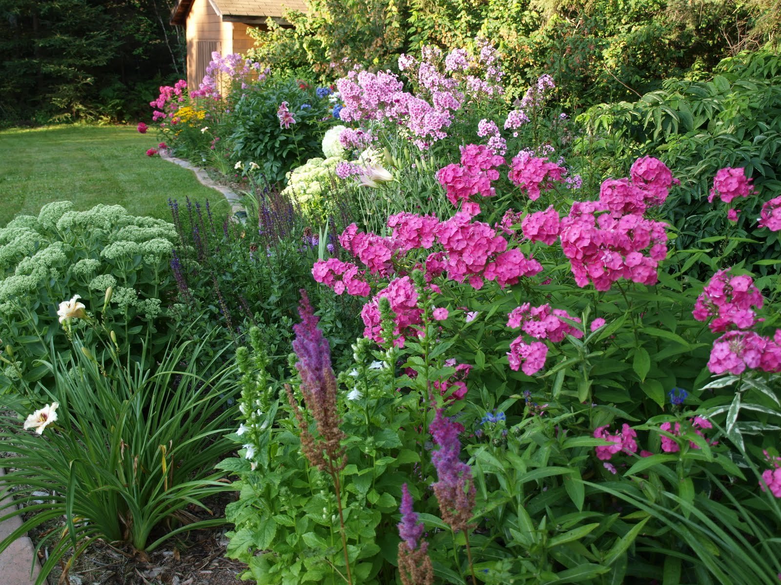 Цветник лилейники Флоксы хосты