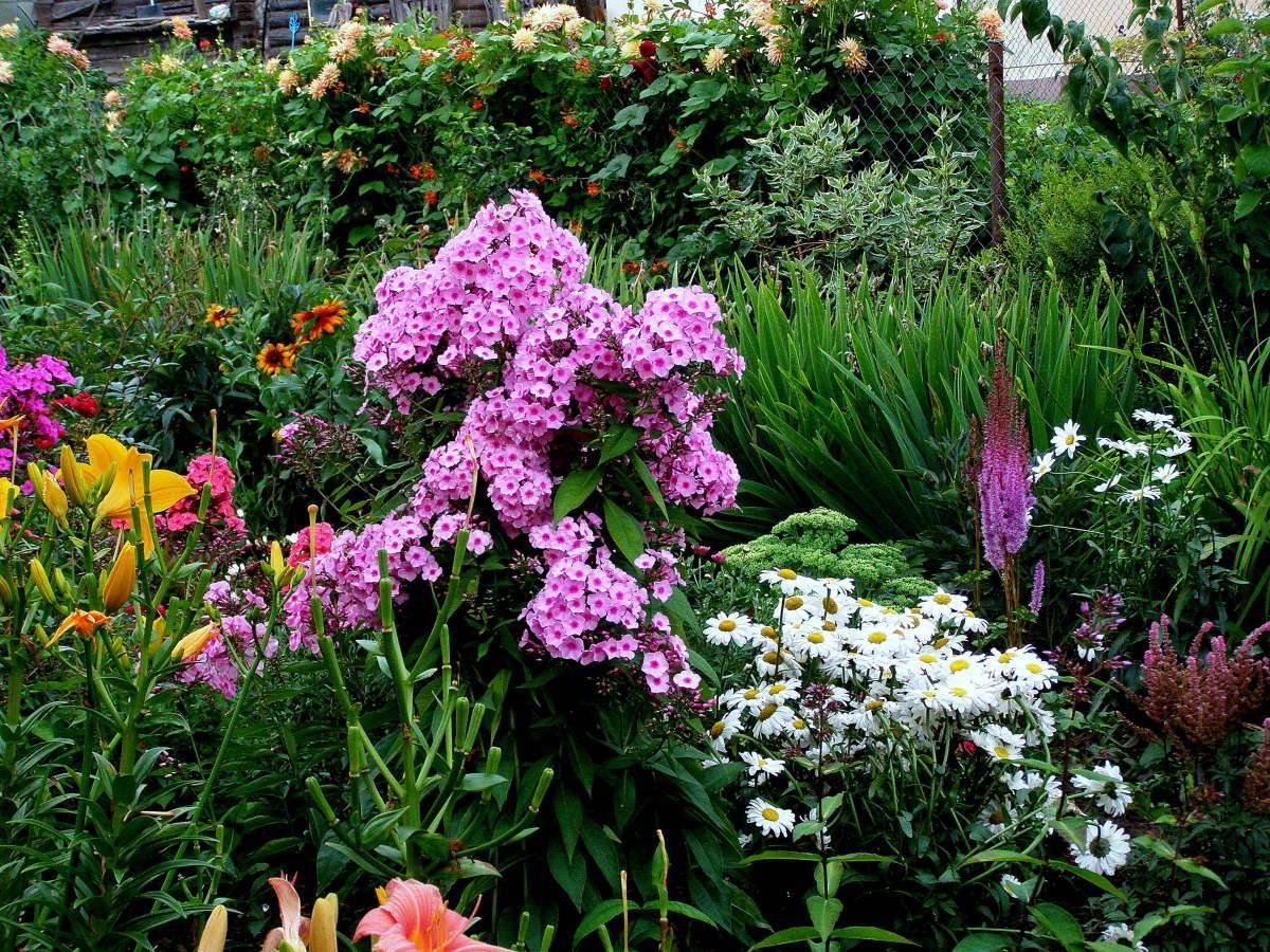 Лилейник с флоксами на клумбе