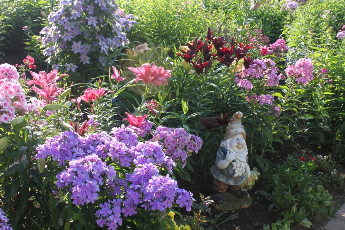 Клумба с лилиями и лилейниками и флоксами