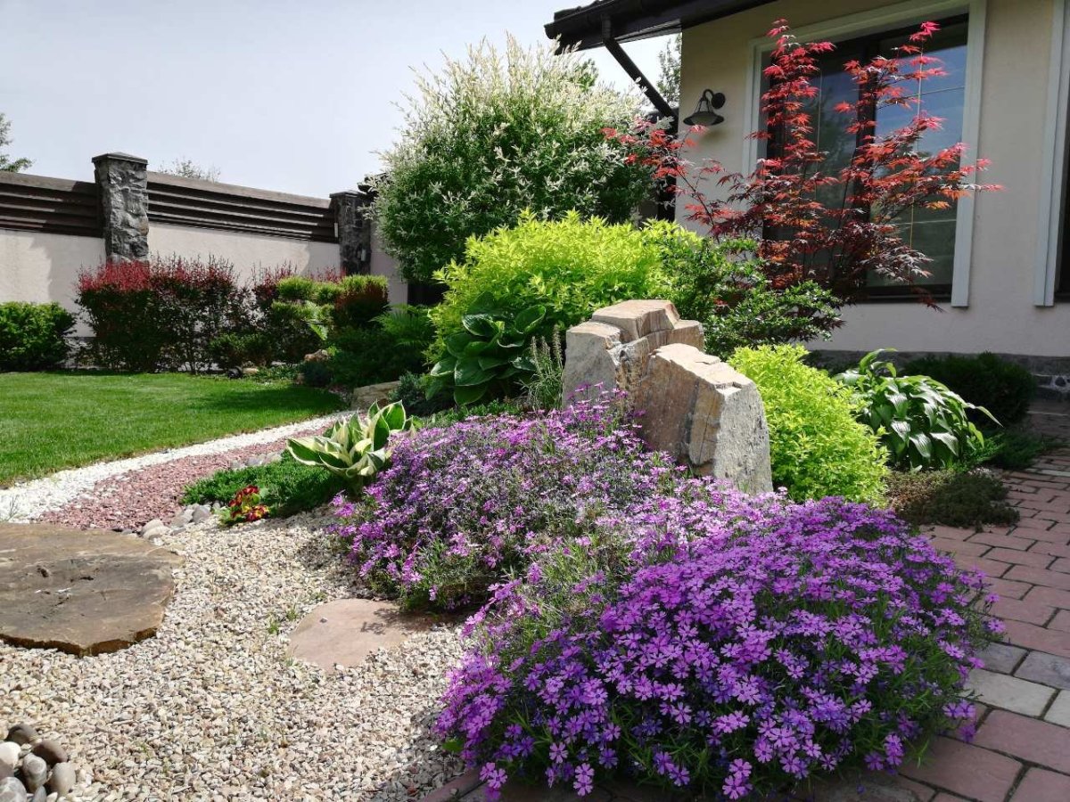 Клумба с хостой и флоксами