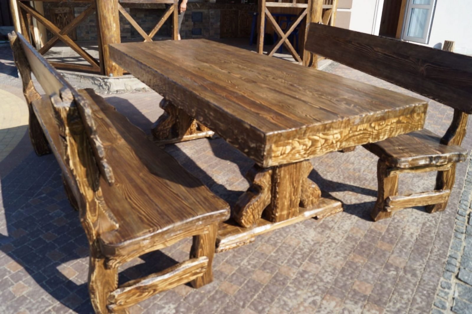 Стол и лавки из массива дерева