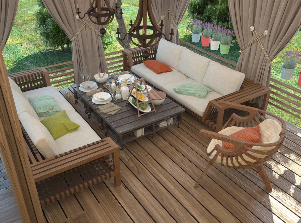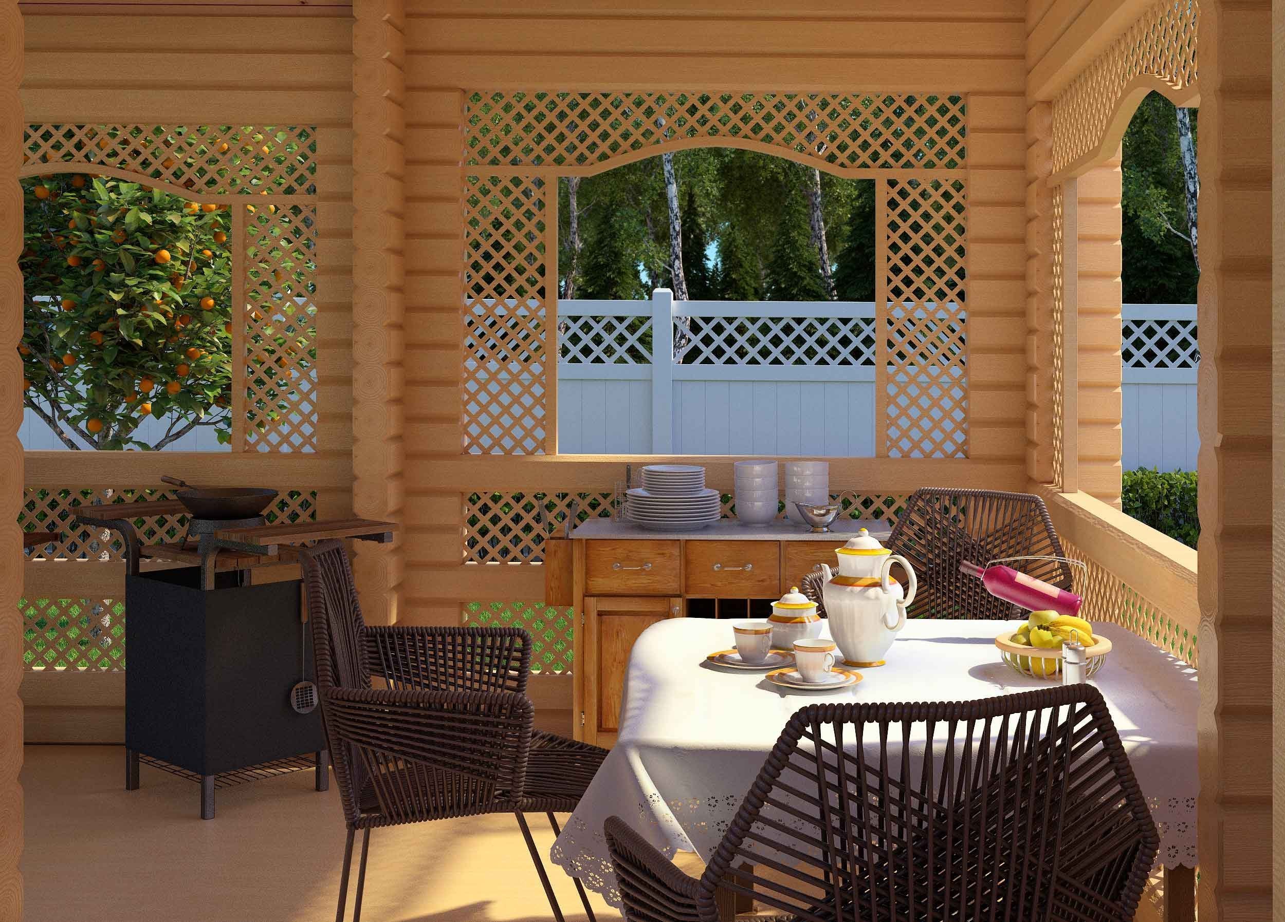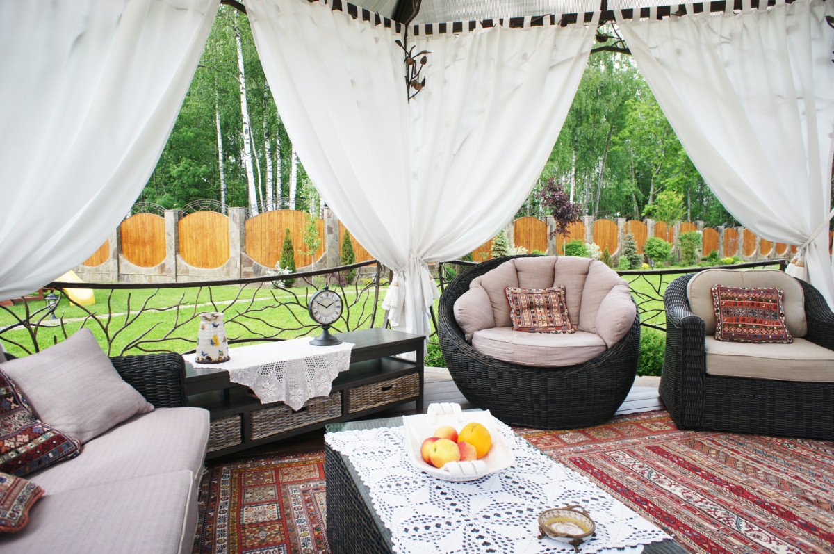 Интерьер беседки 4х4 в среднеазиатском стиле