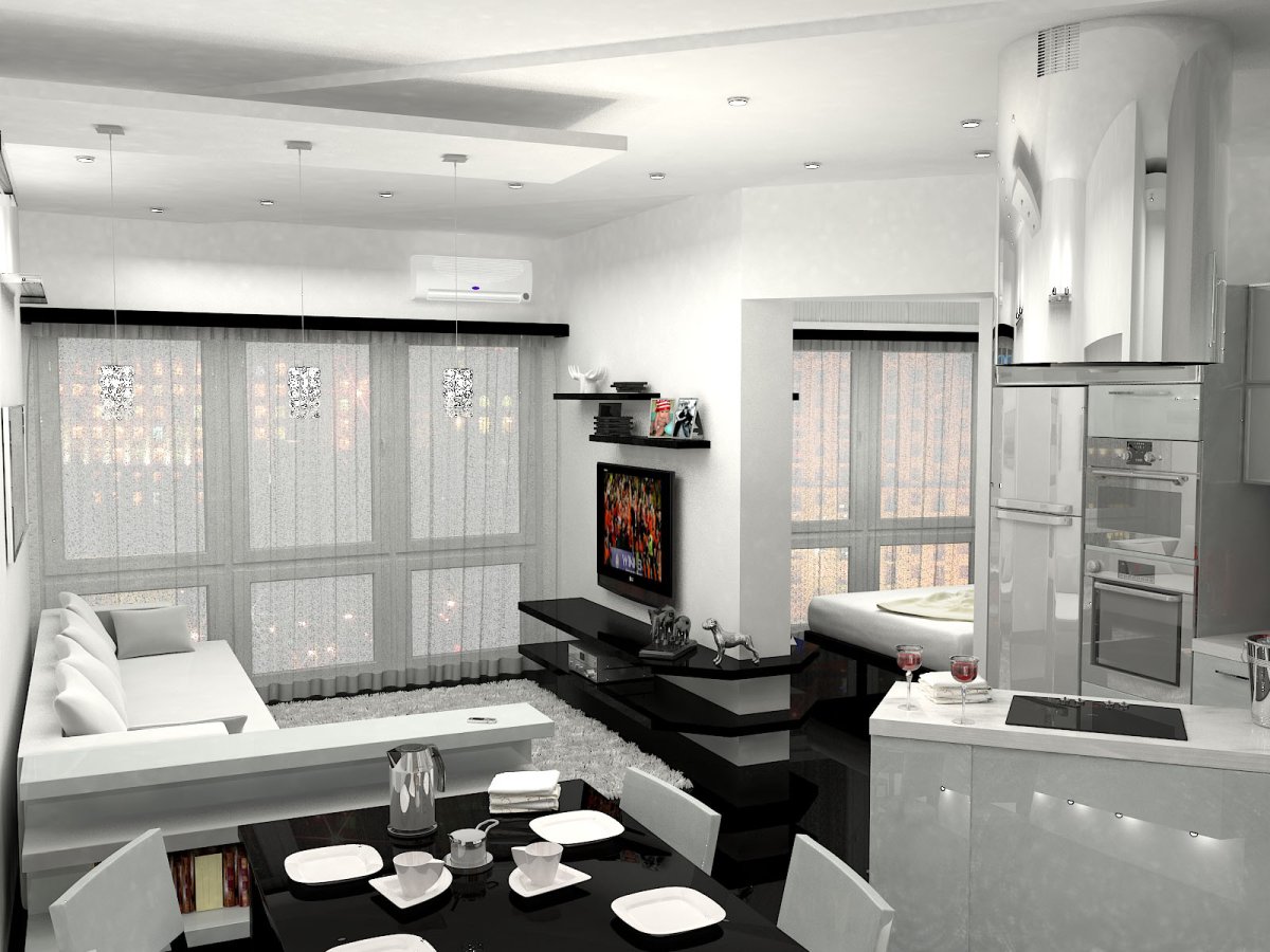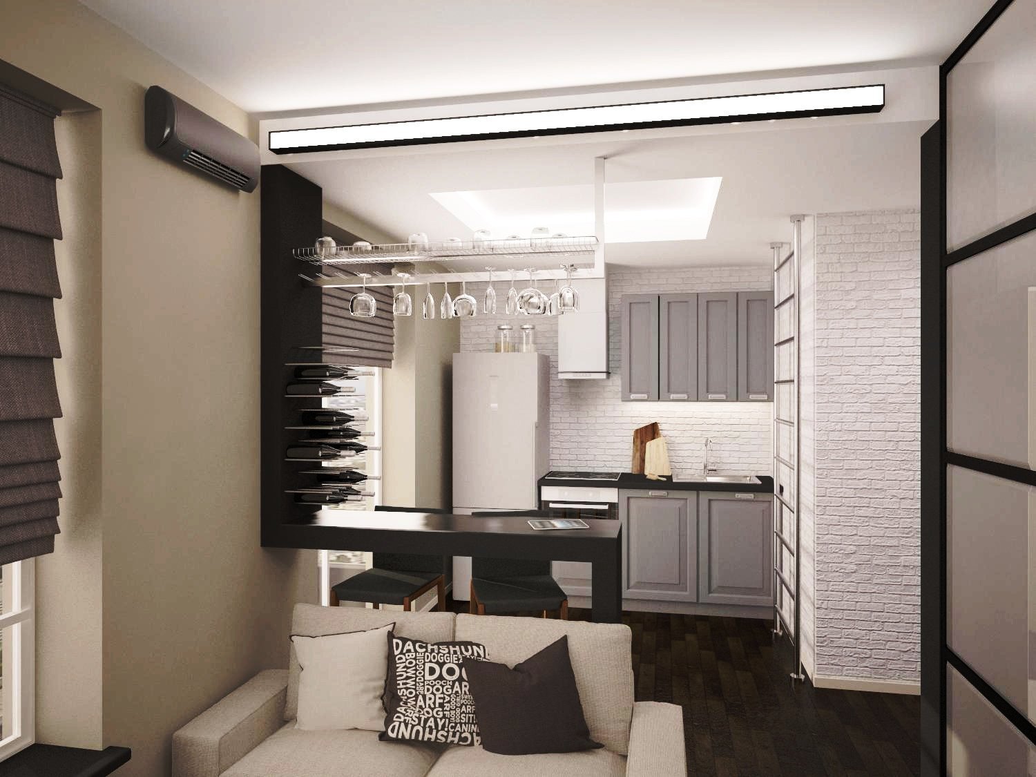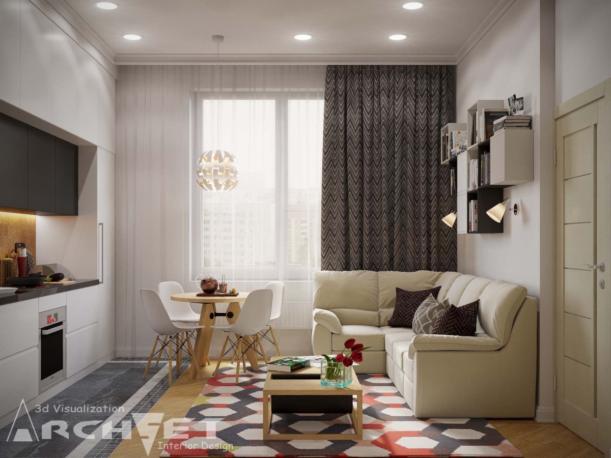 Гостиная в современном стиле хрущевка совмещенная с кухней