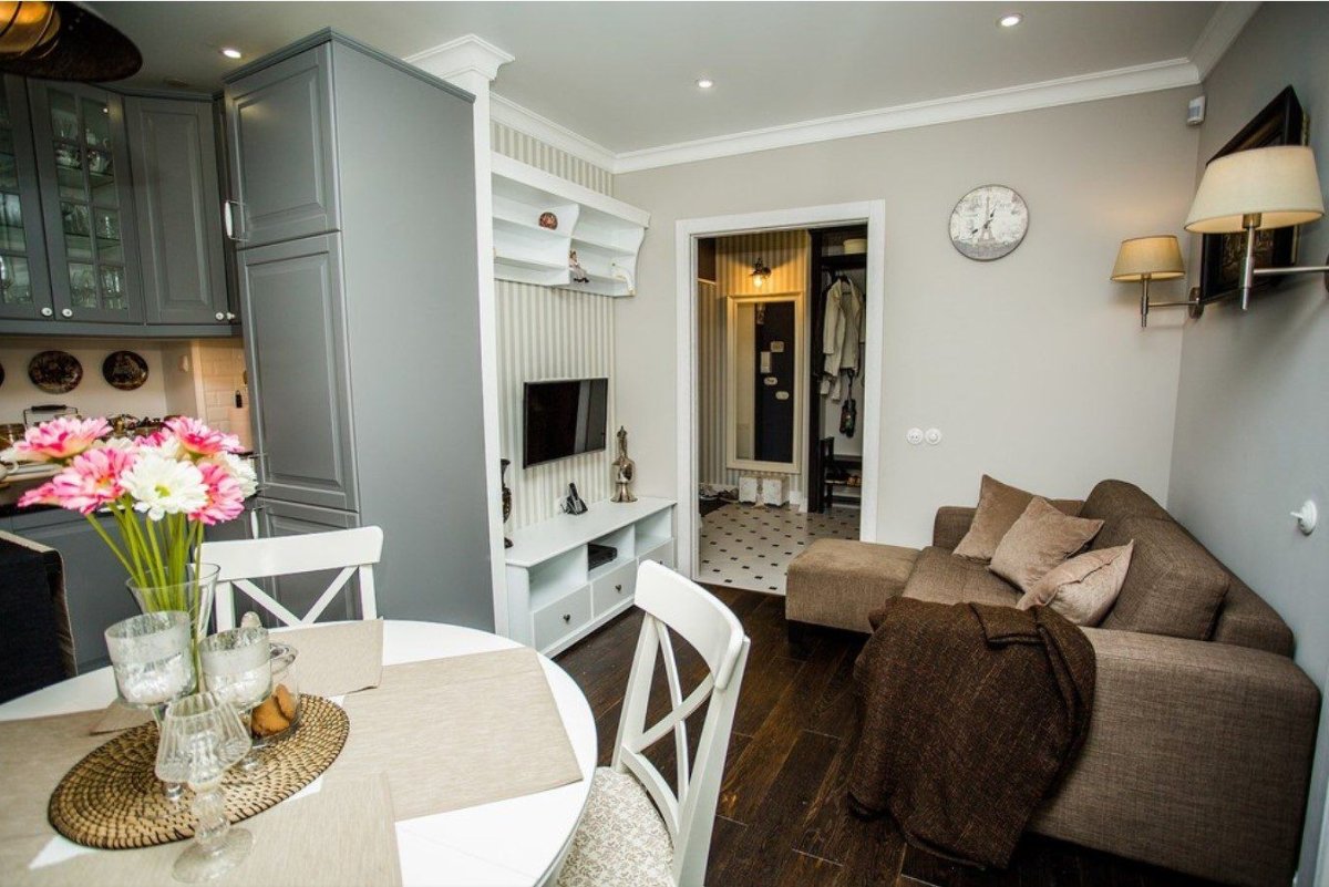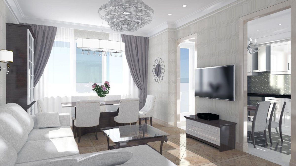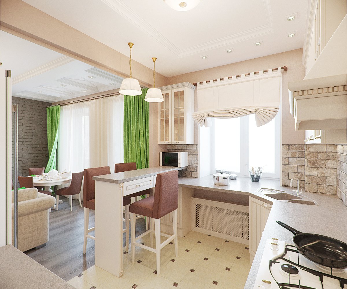 Гостиная в современном стиле хрущевка совмещенная с кухней