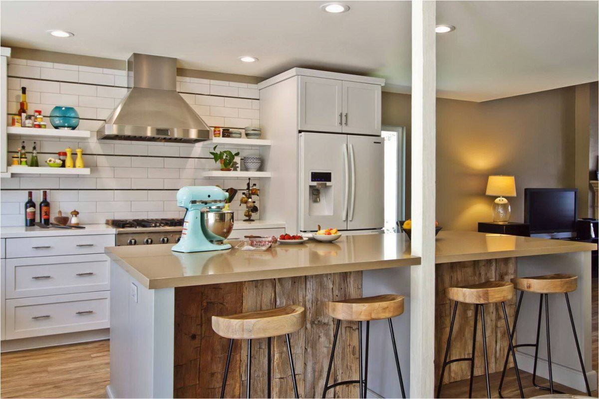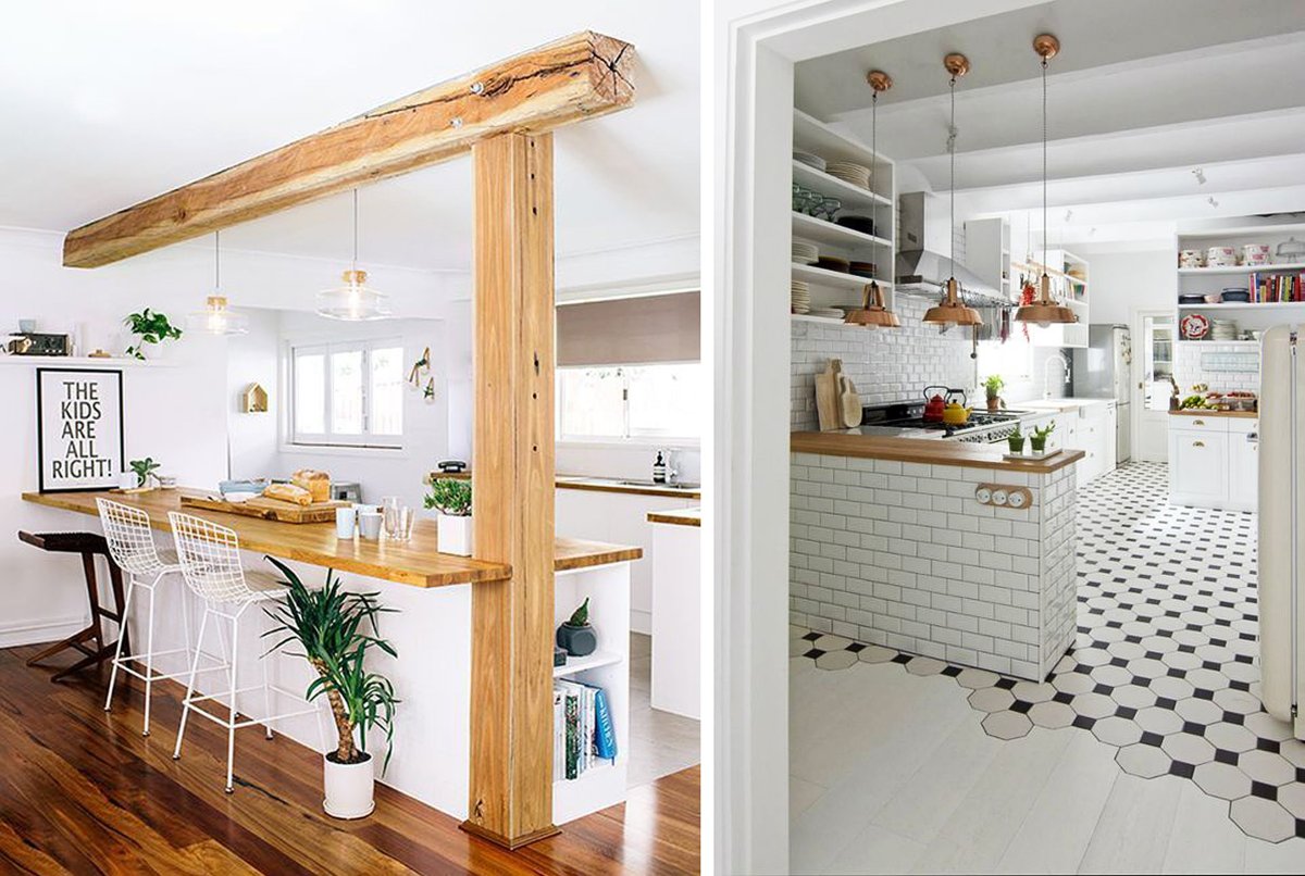 Кухня с деревянной барной стойкой