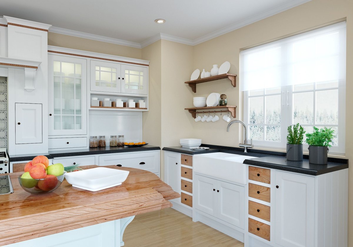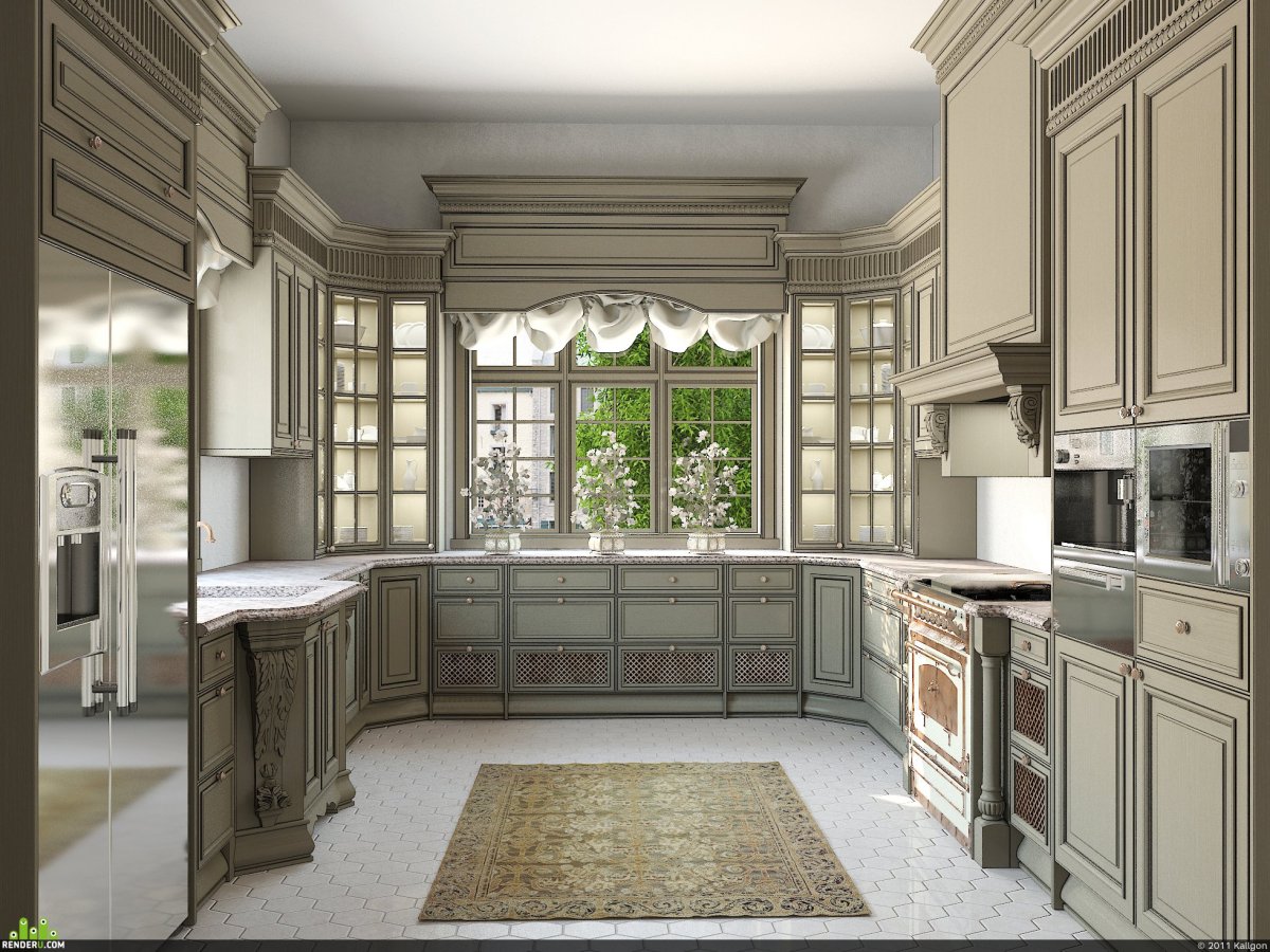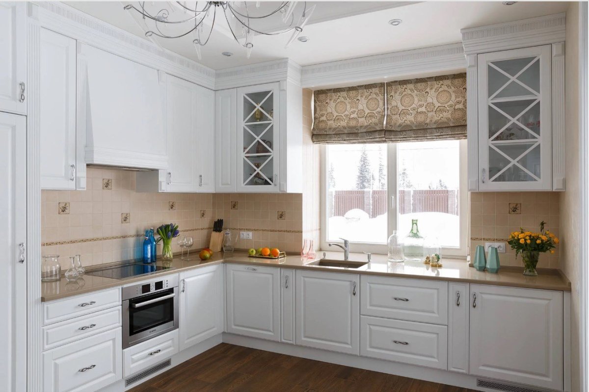 Кухня Неоклассика угловая с раковиной у окна угловая