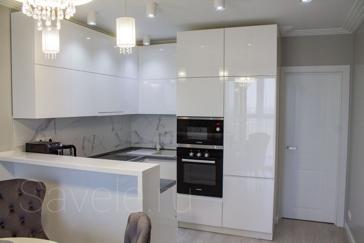 Кухонный гарнитур со встроенной духовкой и микроволновкой