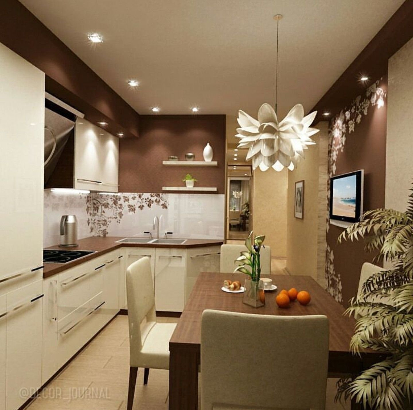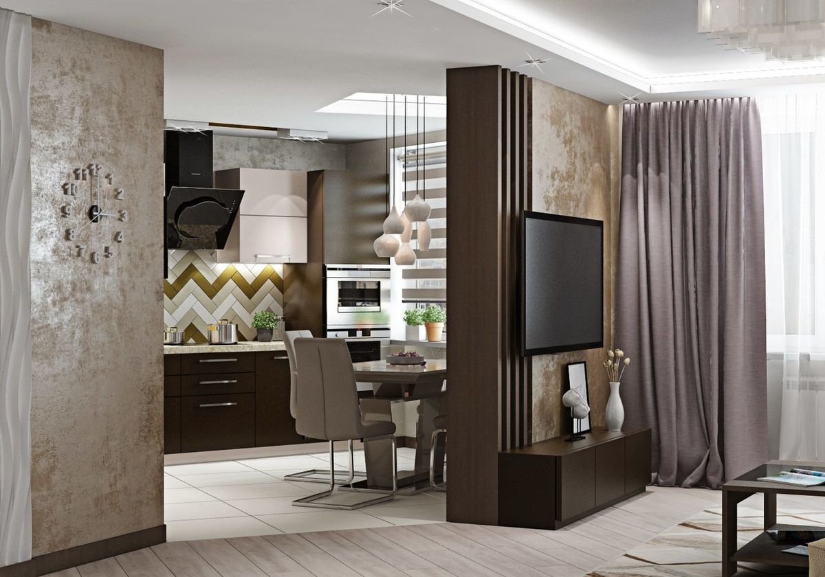 Коричневая кухня гостиная