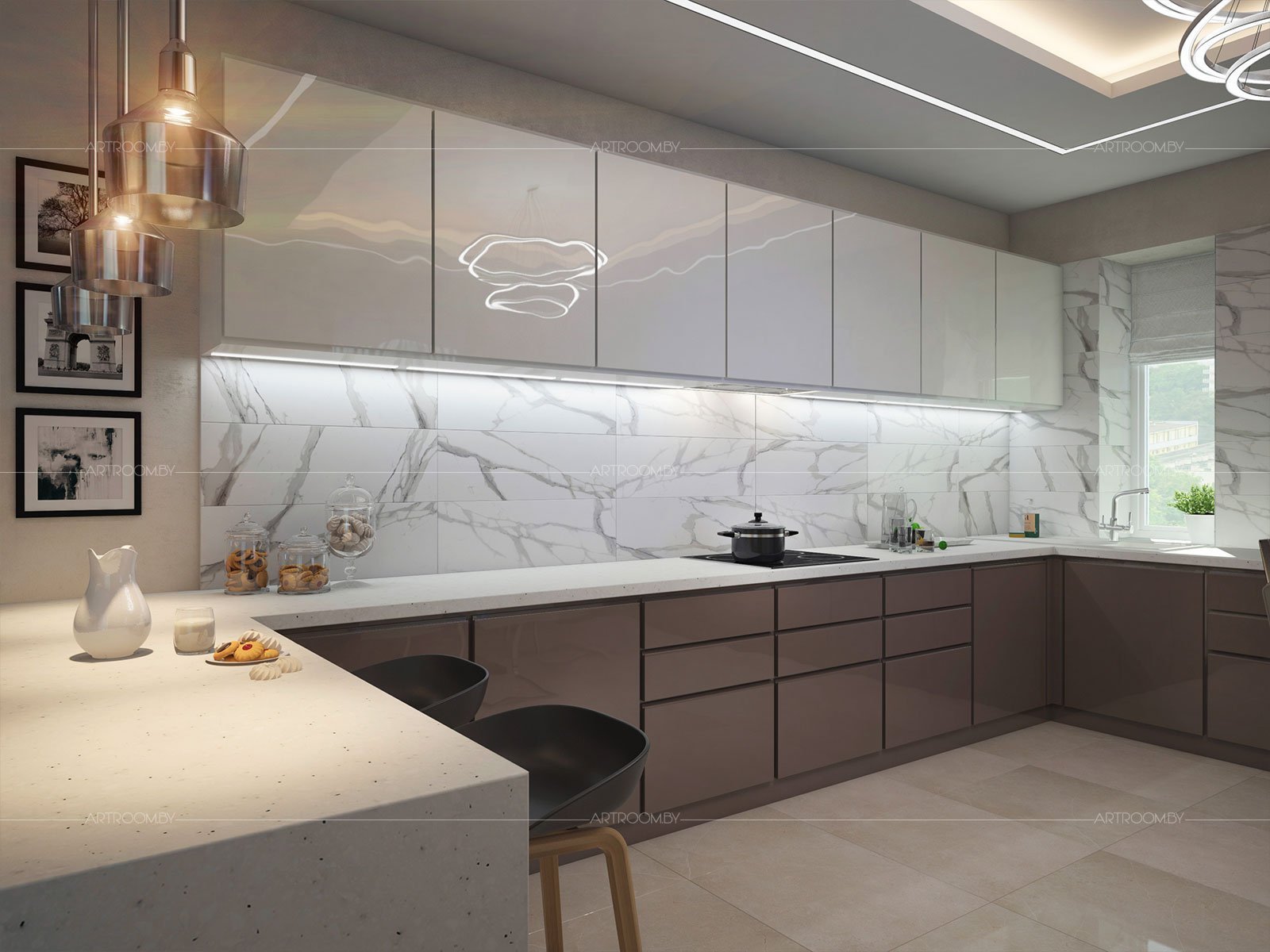 Бело коричневая кухня