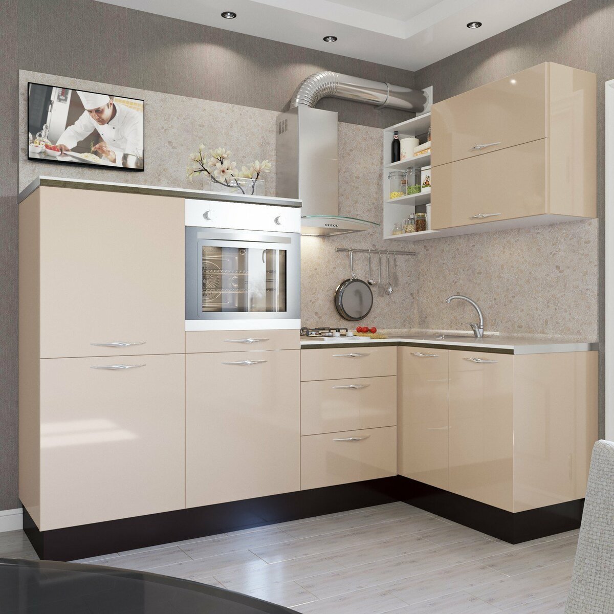 Стильная бежевая кухня