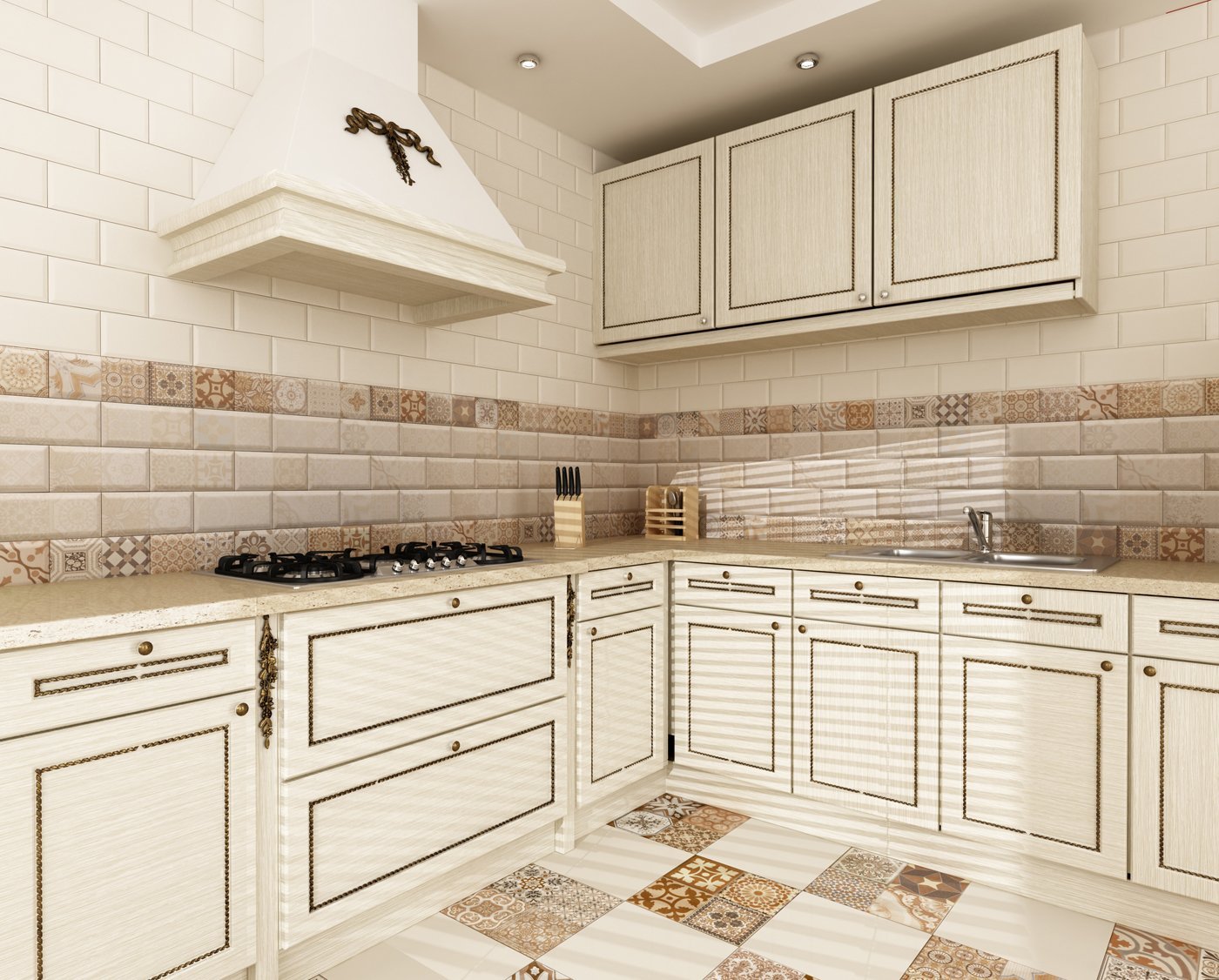 Дизайнерская отделка плиткой кухни