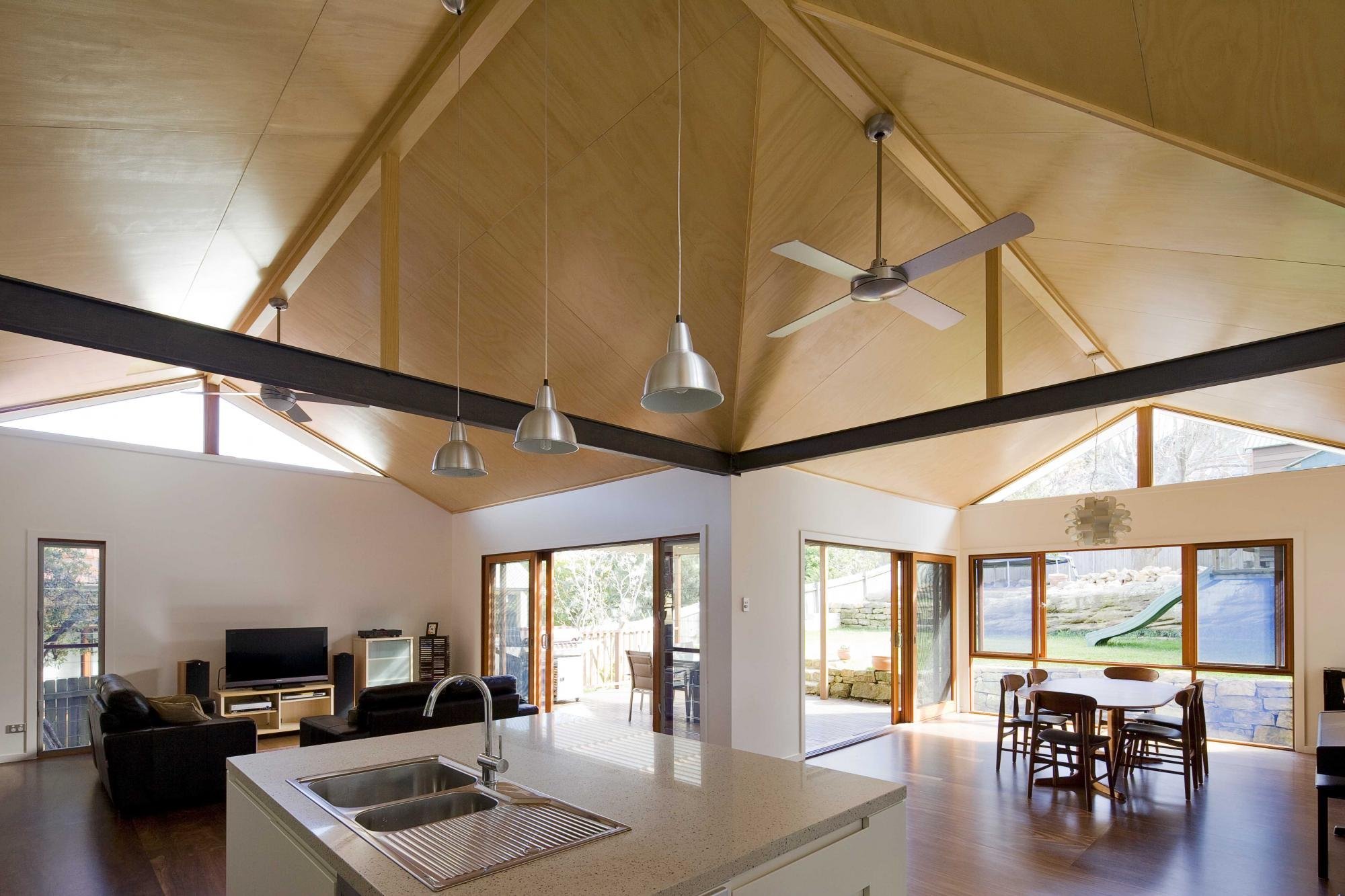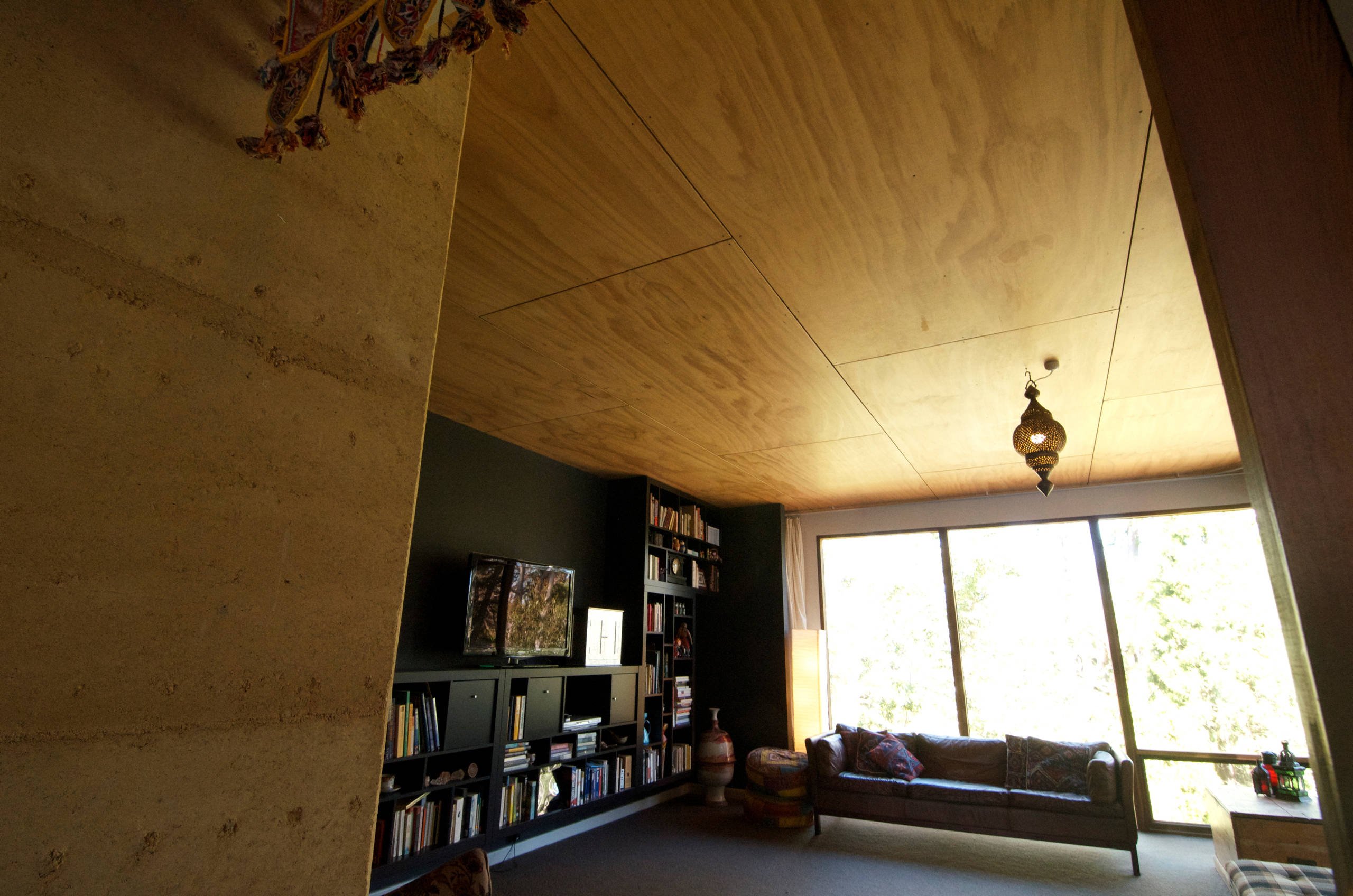 Потолок из фанеры в интерьере