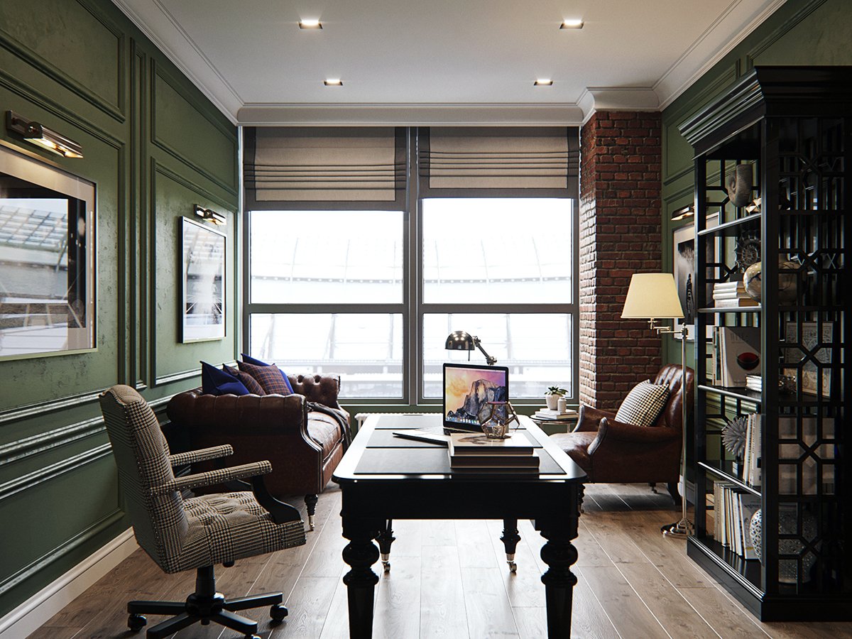 Дизайн кабинета в квартире в современном стиле 15 кв.м