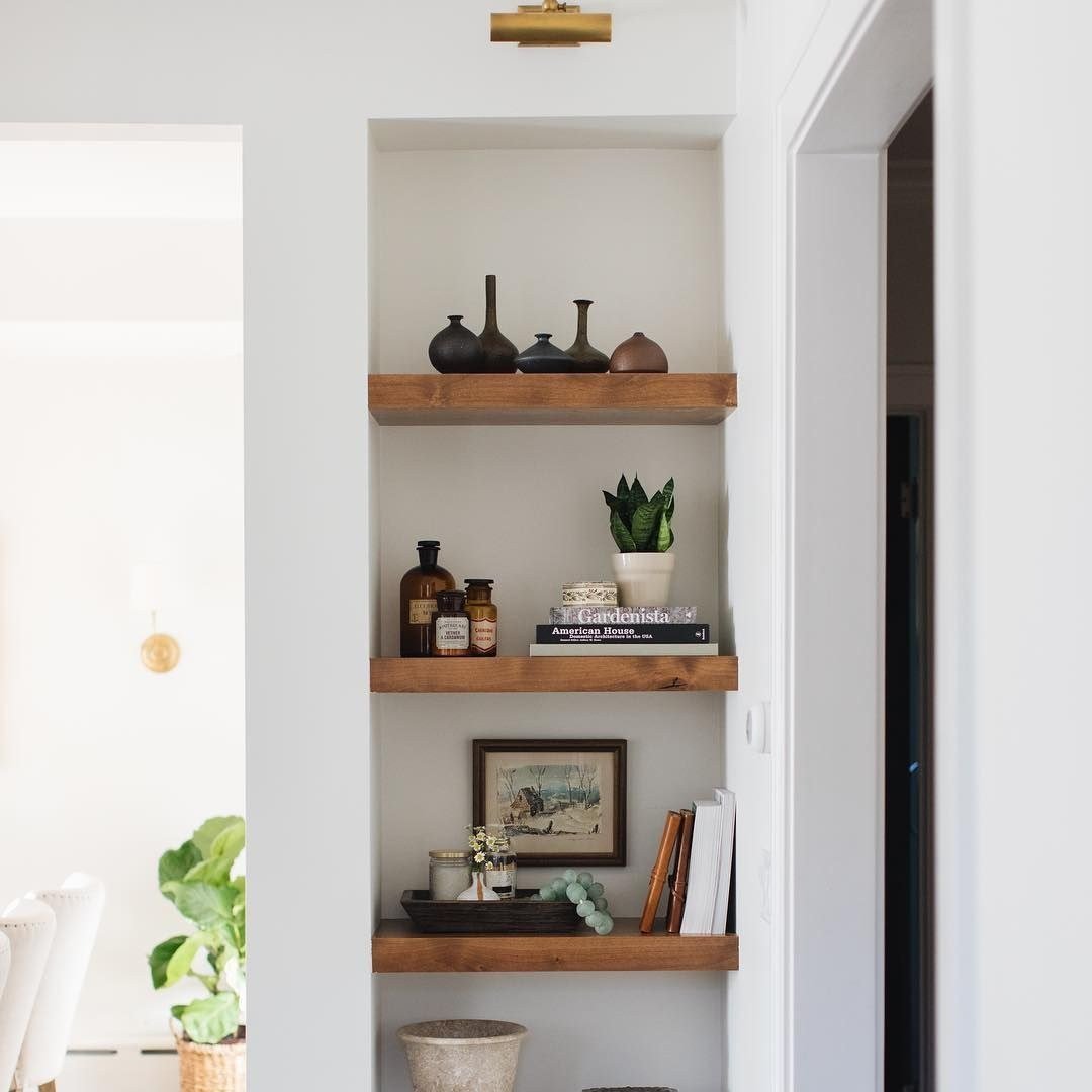 Деревянные полки в нише
