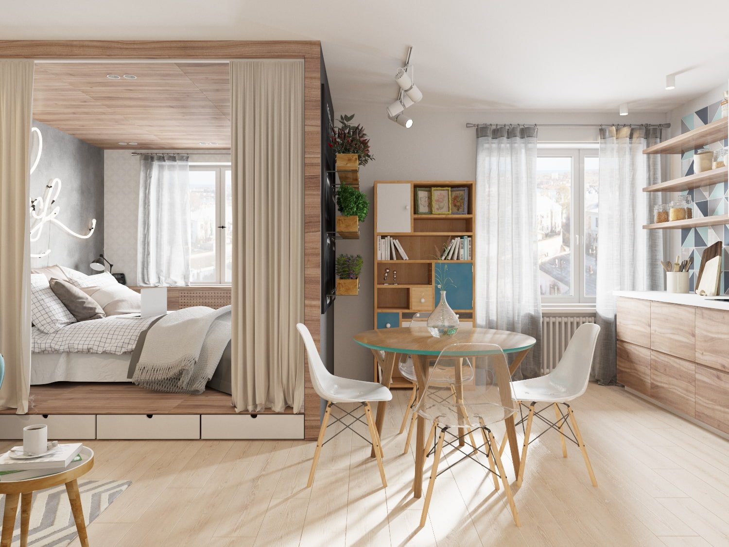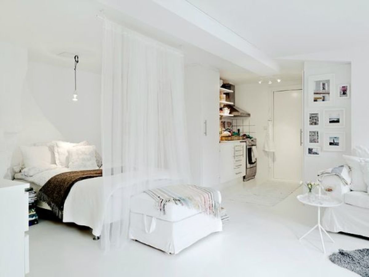 Зонирование спальни и гостиной в скандинавском стиле