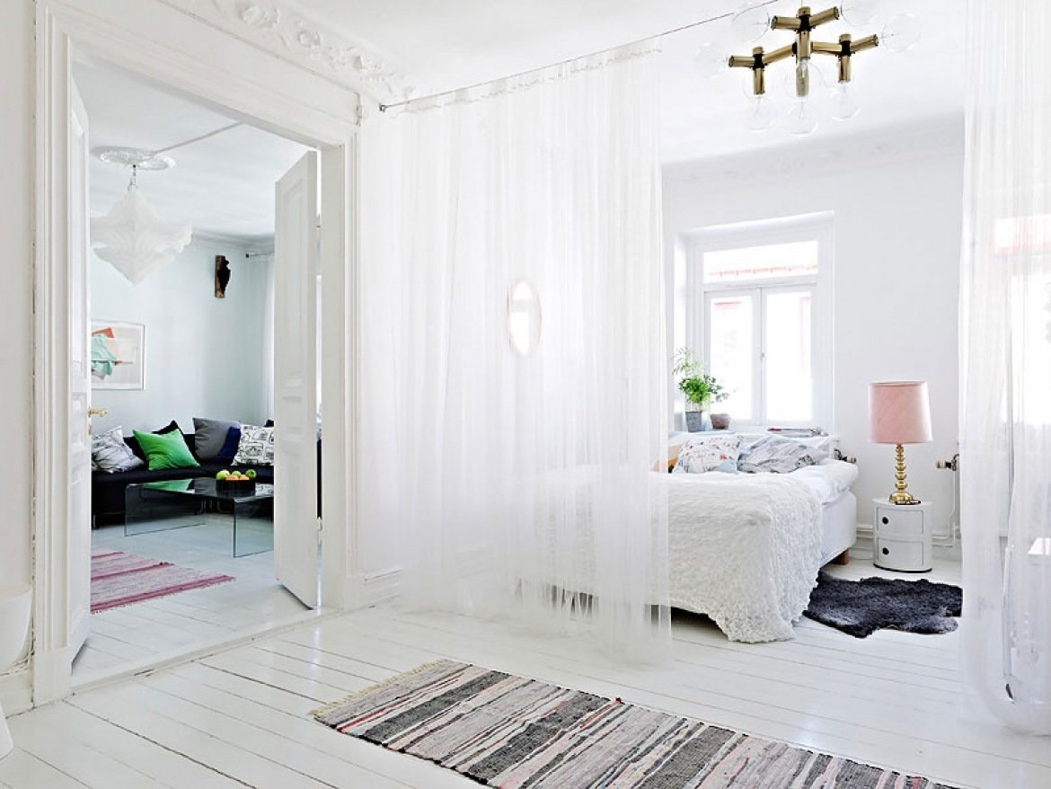 Перегородка из штор для зонирования комнаты