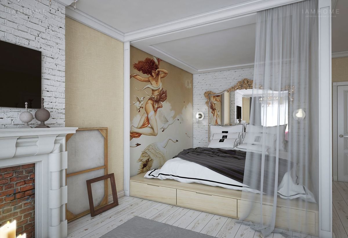 Спальня в нише за шторой