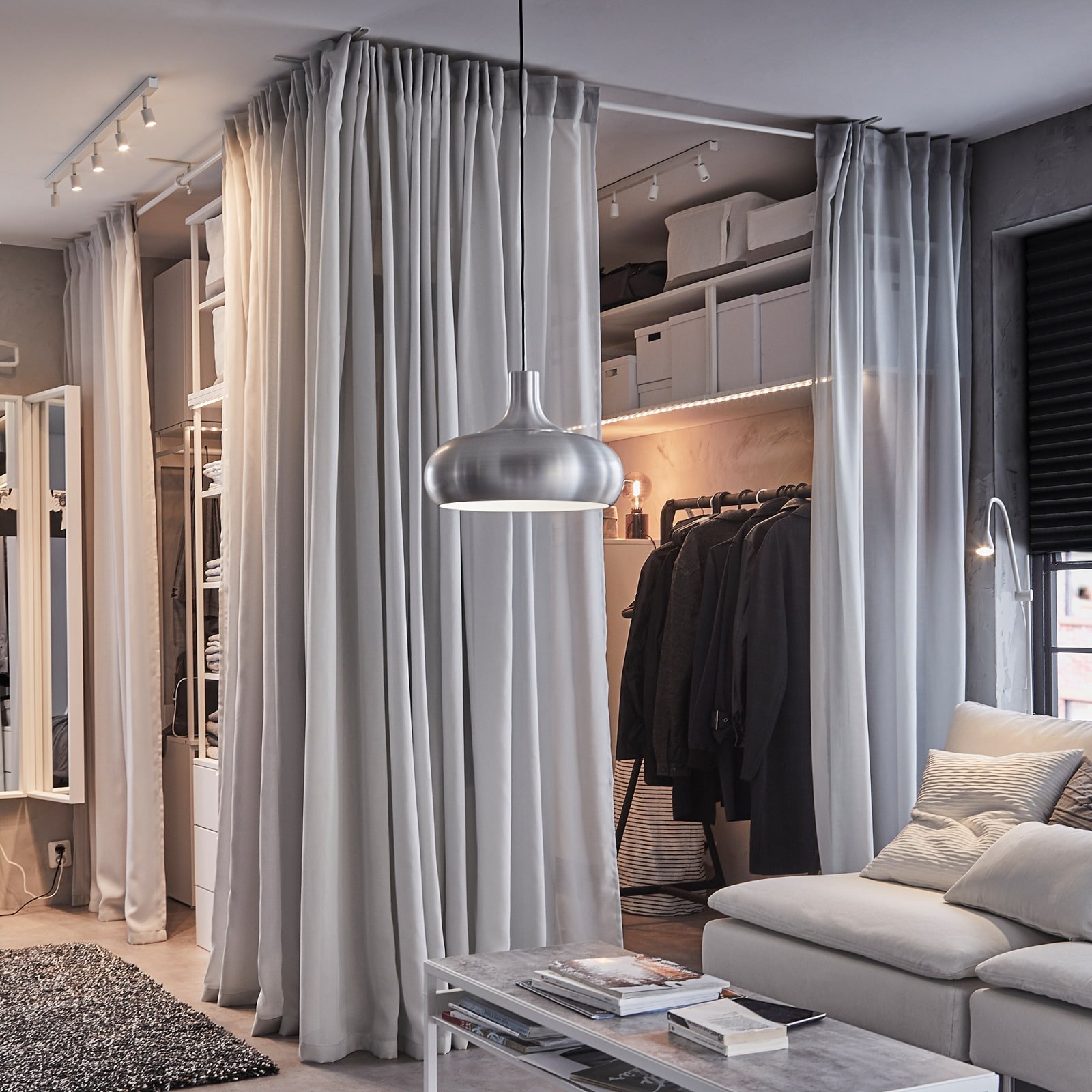 Зонирование комнаты шторами икеа