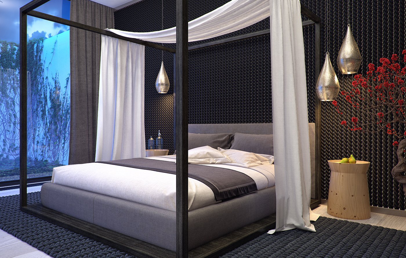 Современная спальня с балдахином