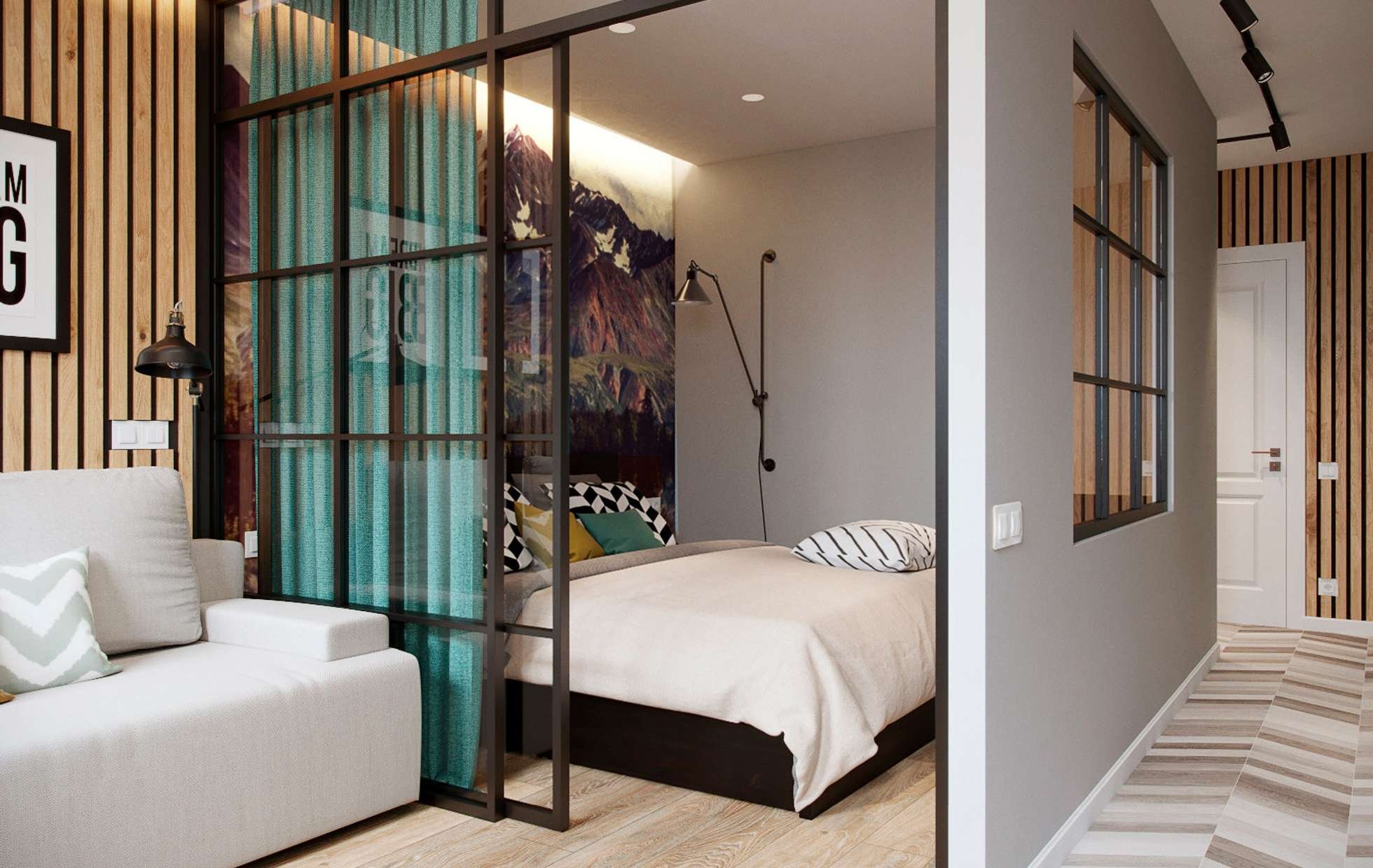 Перегородка для зонирования комнаты в стиле лофт