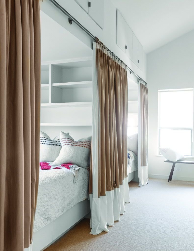 Зонирование спального места шторами