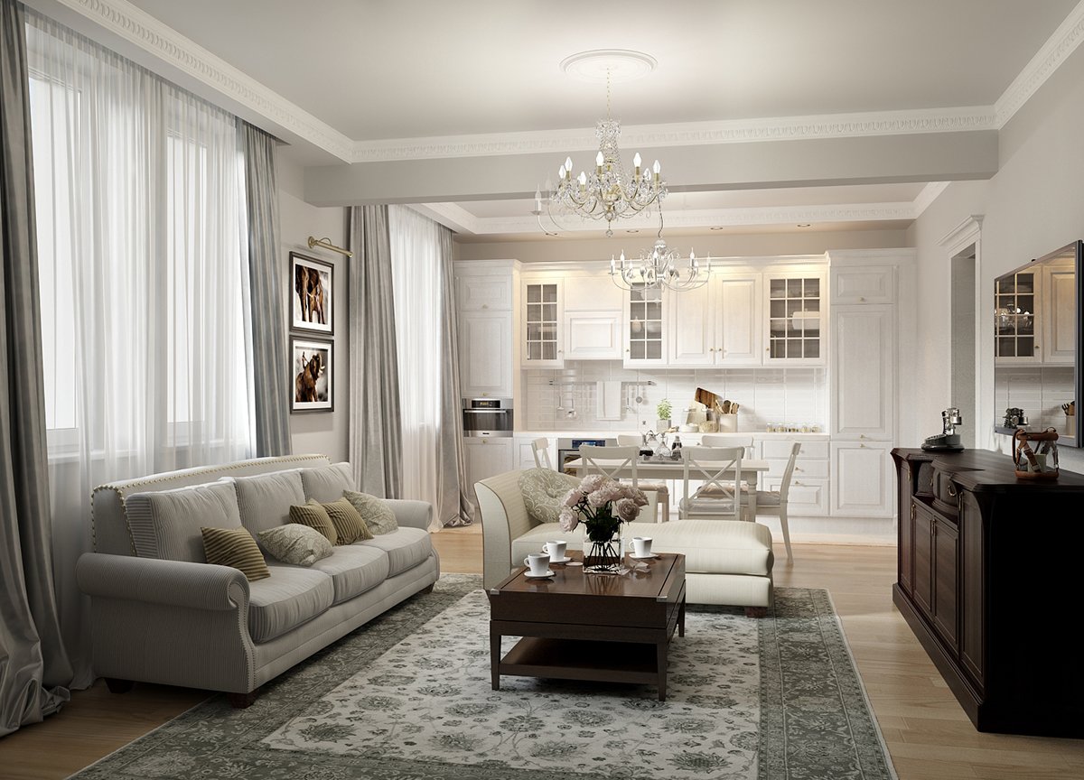 Кухня Неоклассика кухня гостиная 30 кв.м