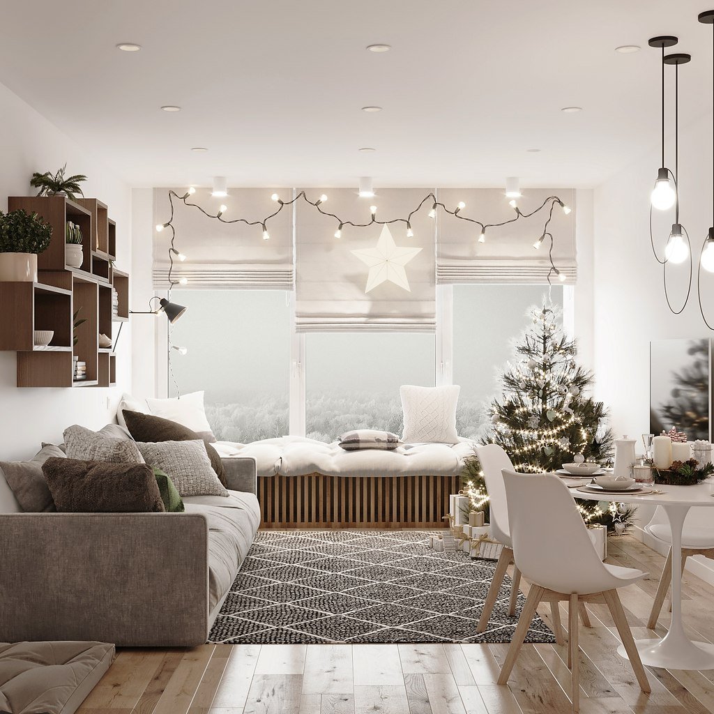 Интерьер на новый год в светлых тонах