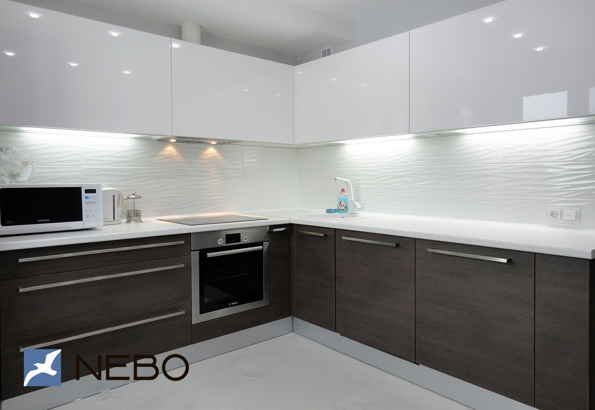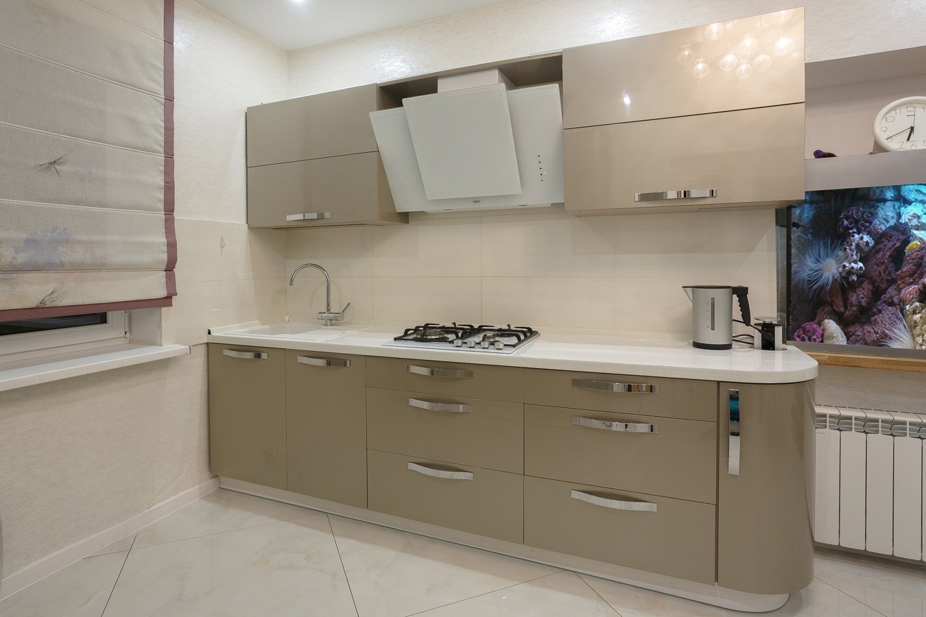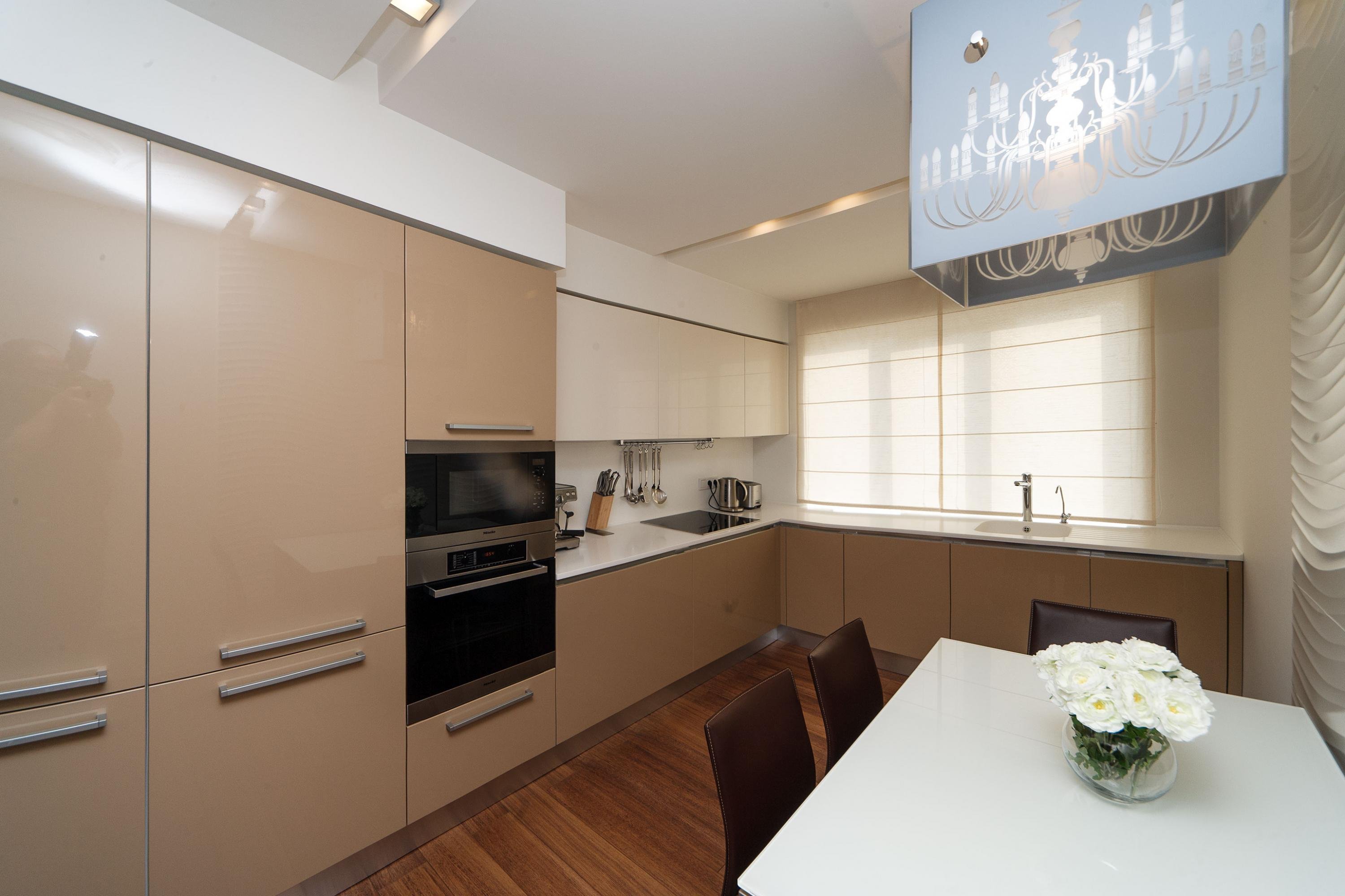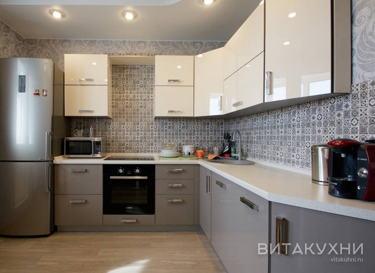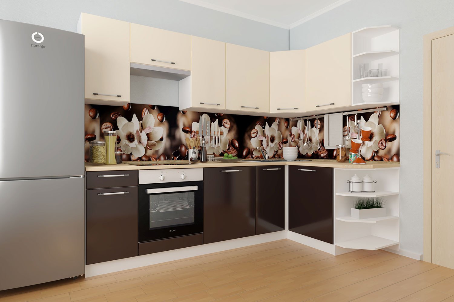 Кухня Анастасия Тип 3 белый глянец и капучино