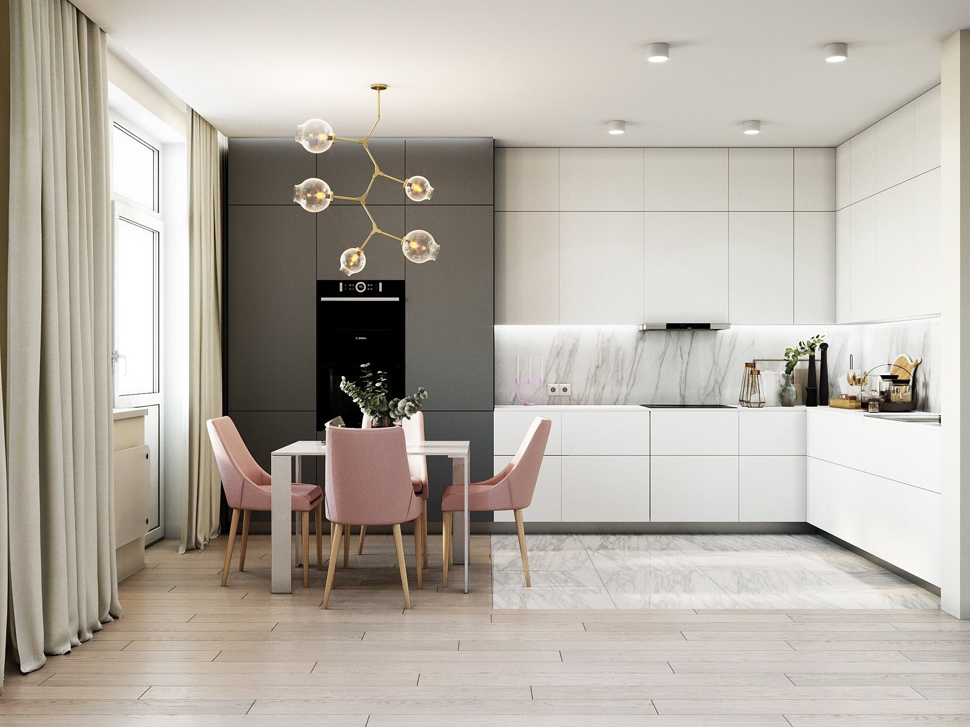 Интерьер кухни в пудровых тонах