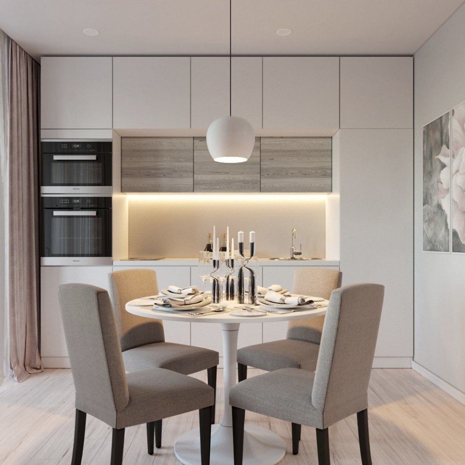 Кухня гостиная светлая современная